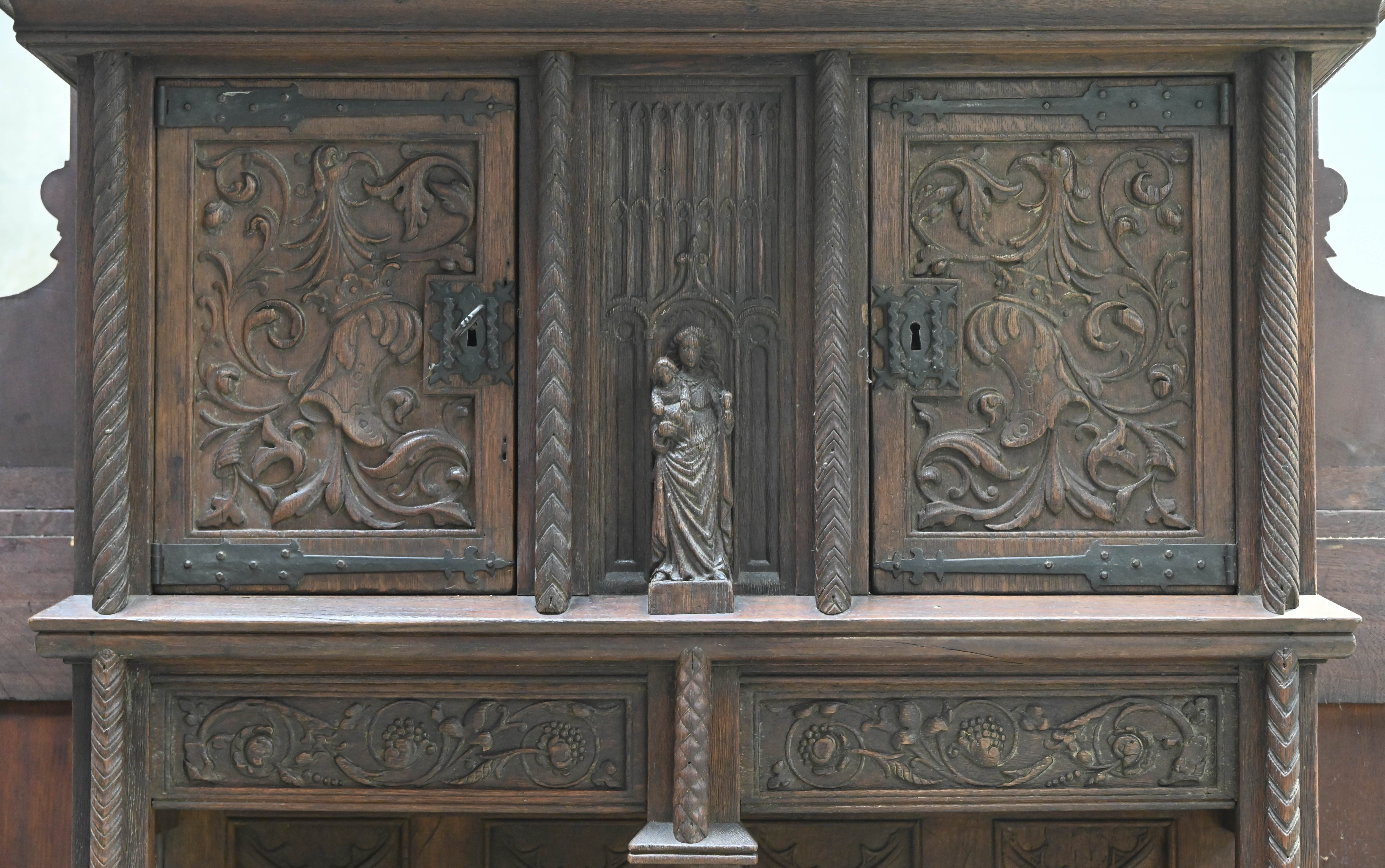 Een massief eikenhouten 19e eeuwse deux-corps met paneeldeuren.