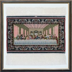 A framed handmade silk carpet depicting the Last Supper. Comes with a certificate. -