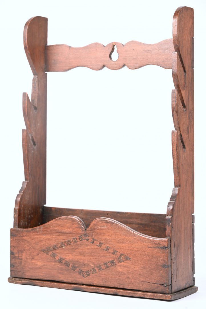 A solid wood newspaper rack.