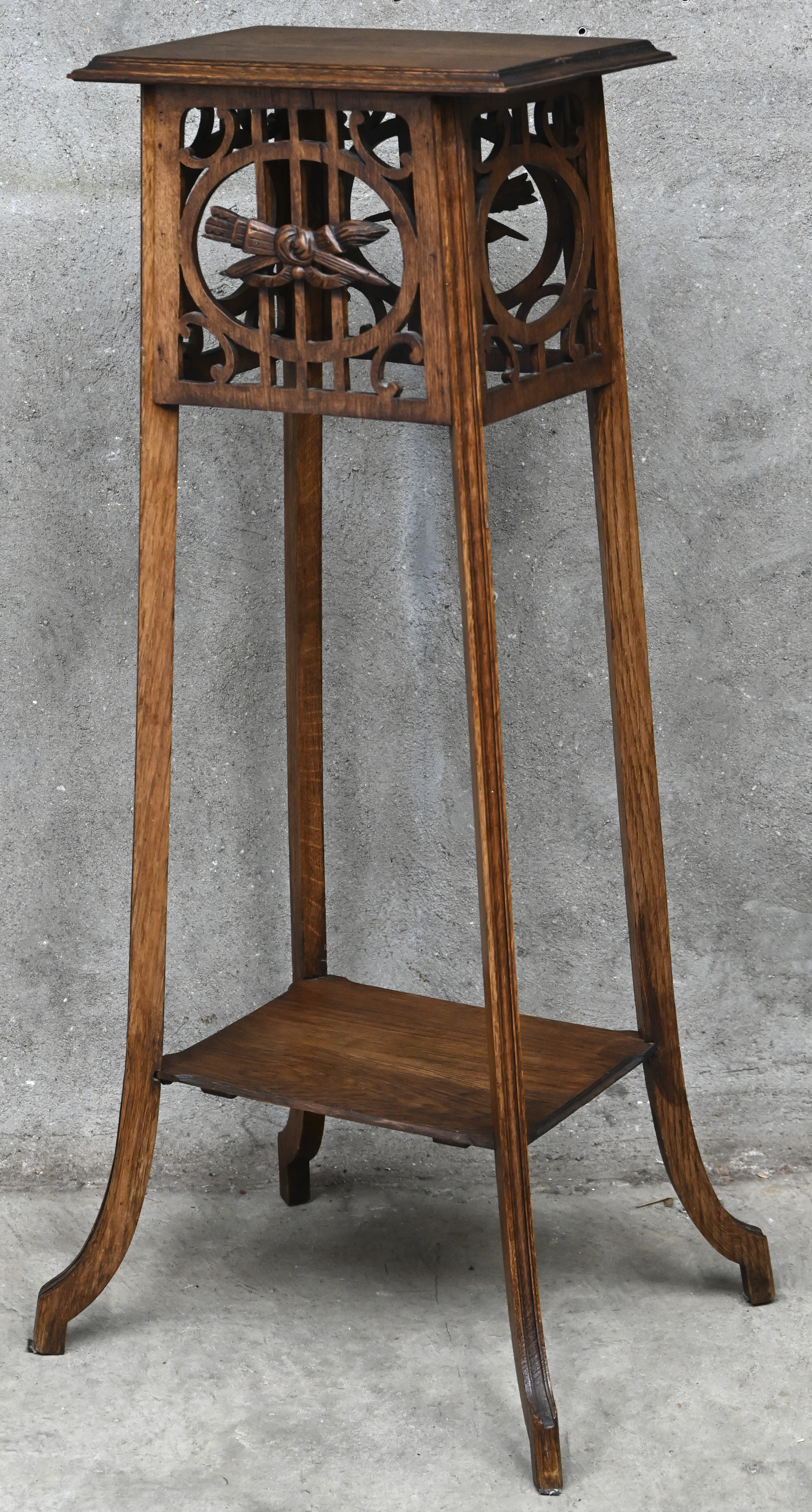 A brass plant stand with two levels, openwork in the Louis XV style. -