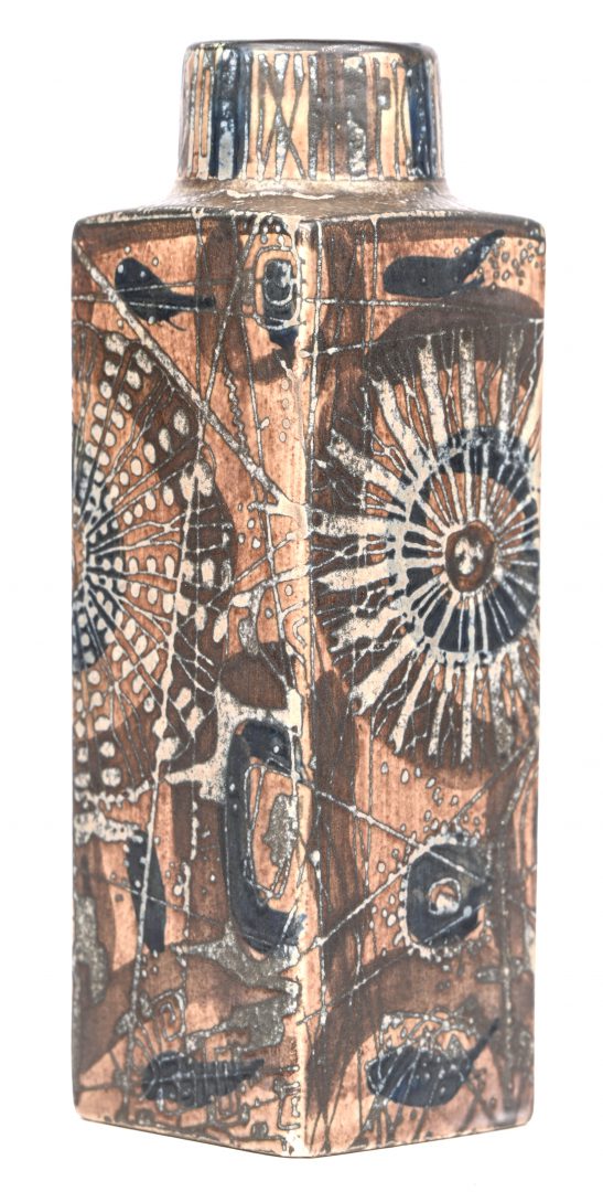 #13Een tafellampje van geglazuurd aardewerk in de vorm van een vuurtoren, gemerkt Schierholz & Sohn.
