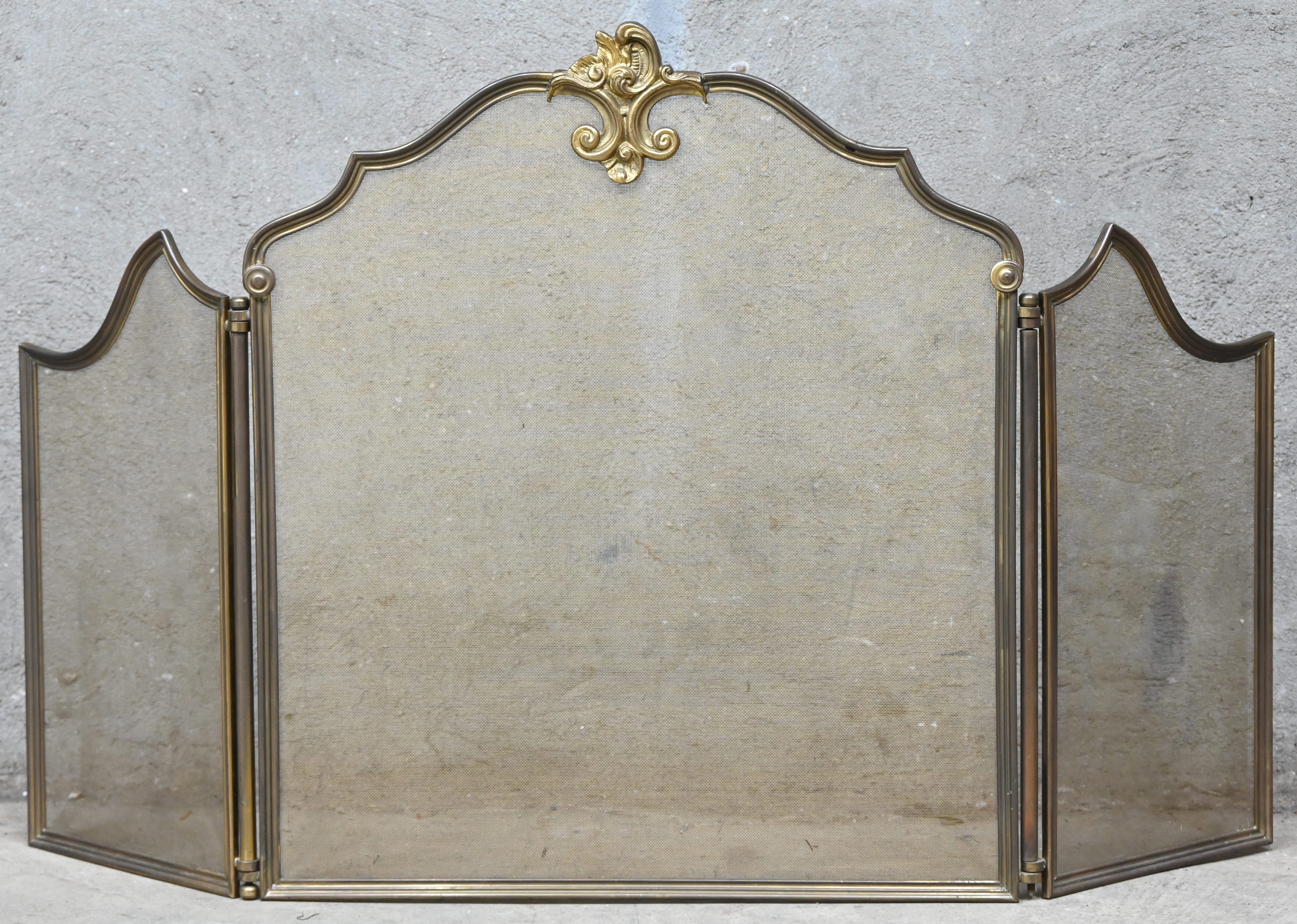 Een messing drieluik haarscherm.
