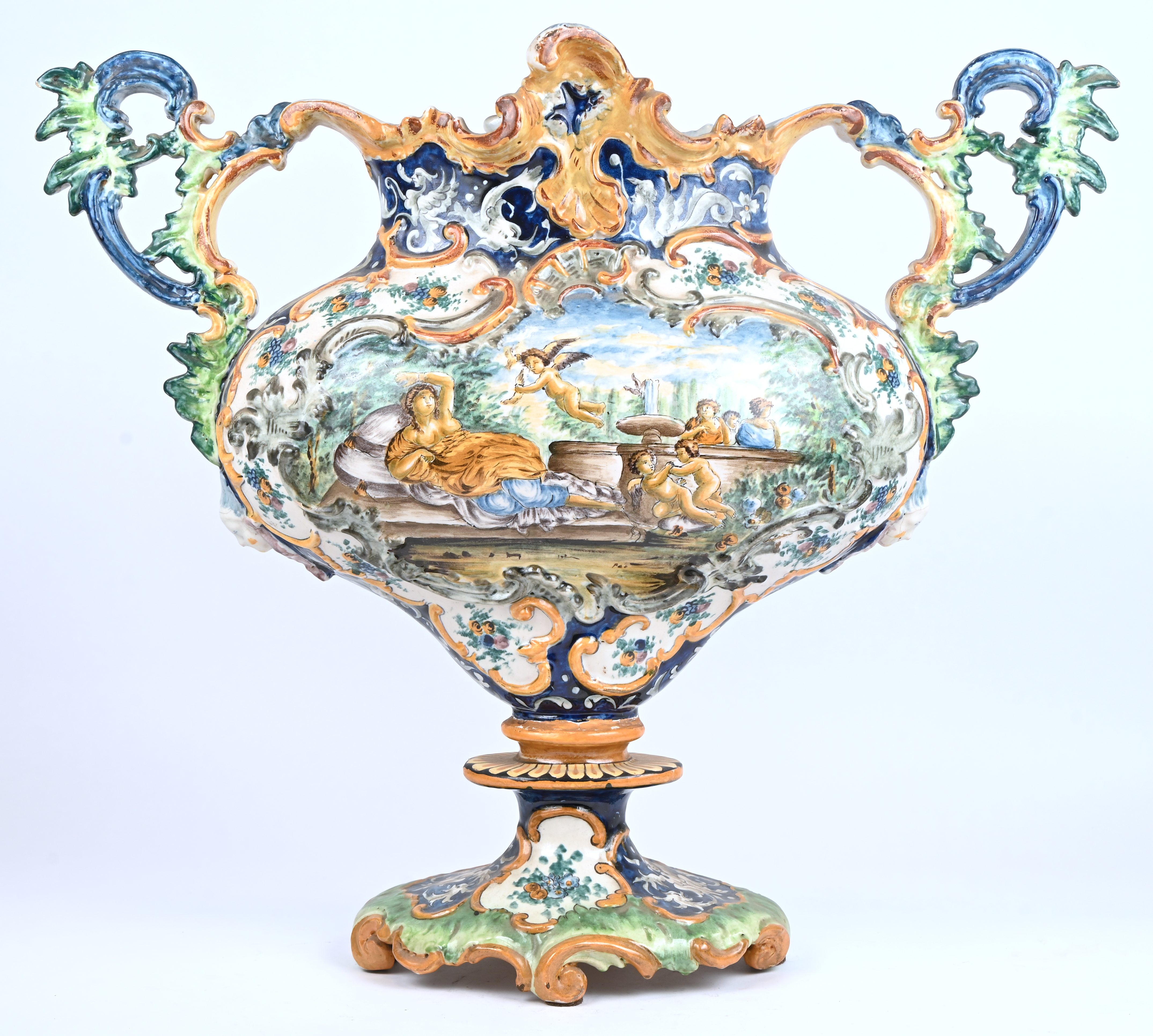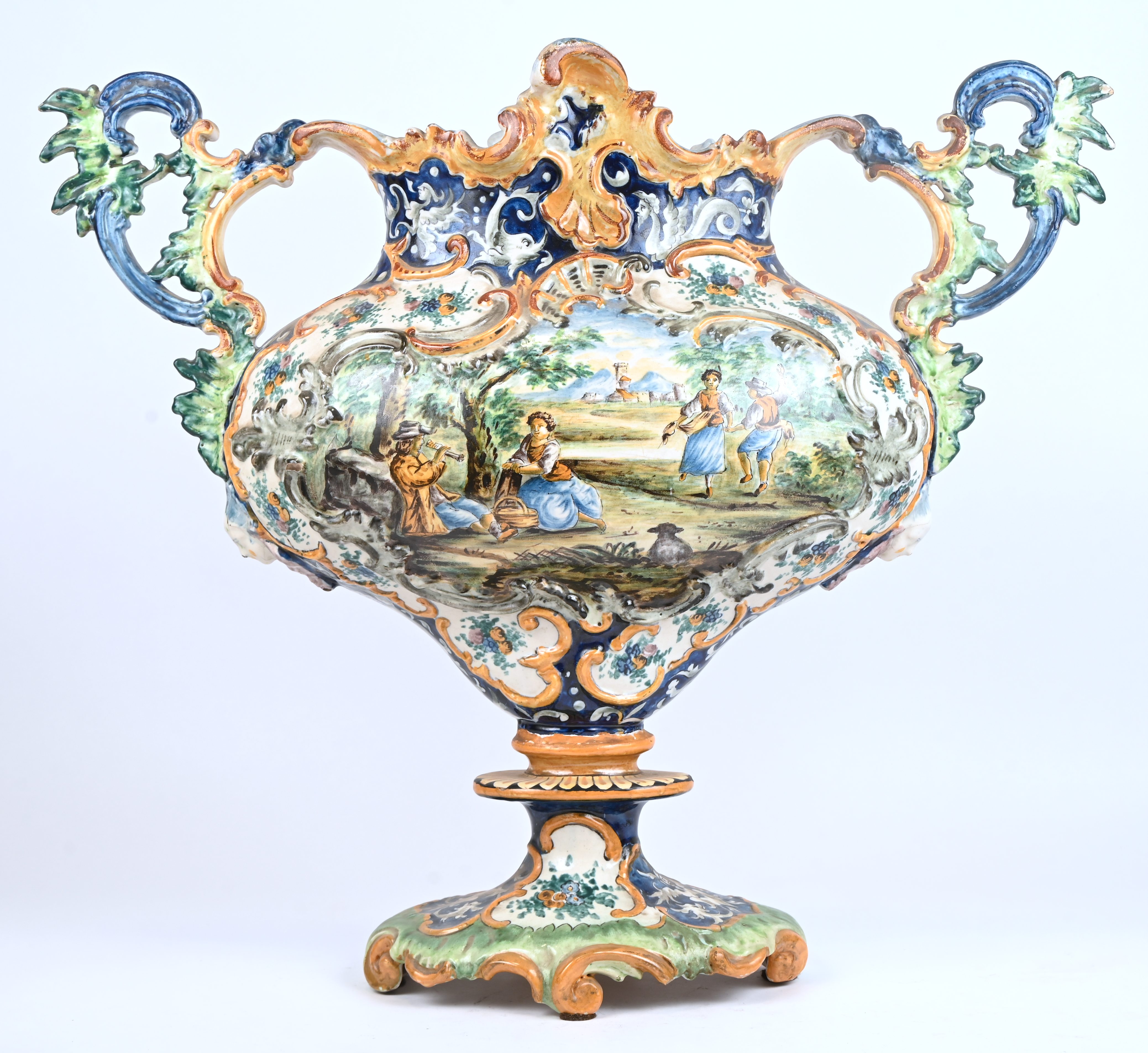 A centerpiece, Italian pottery, after a 19th-century model.