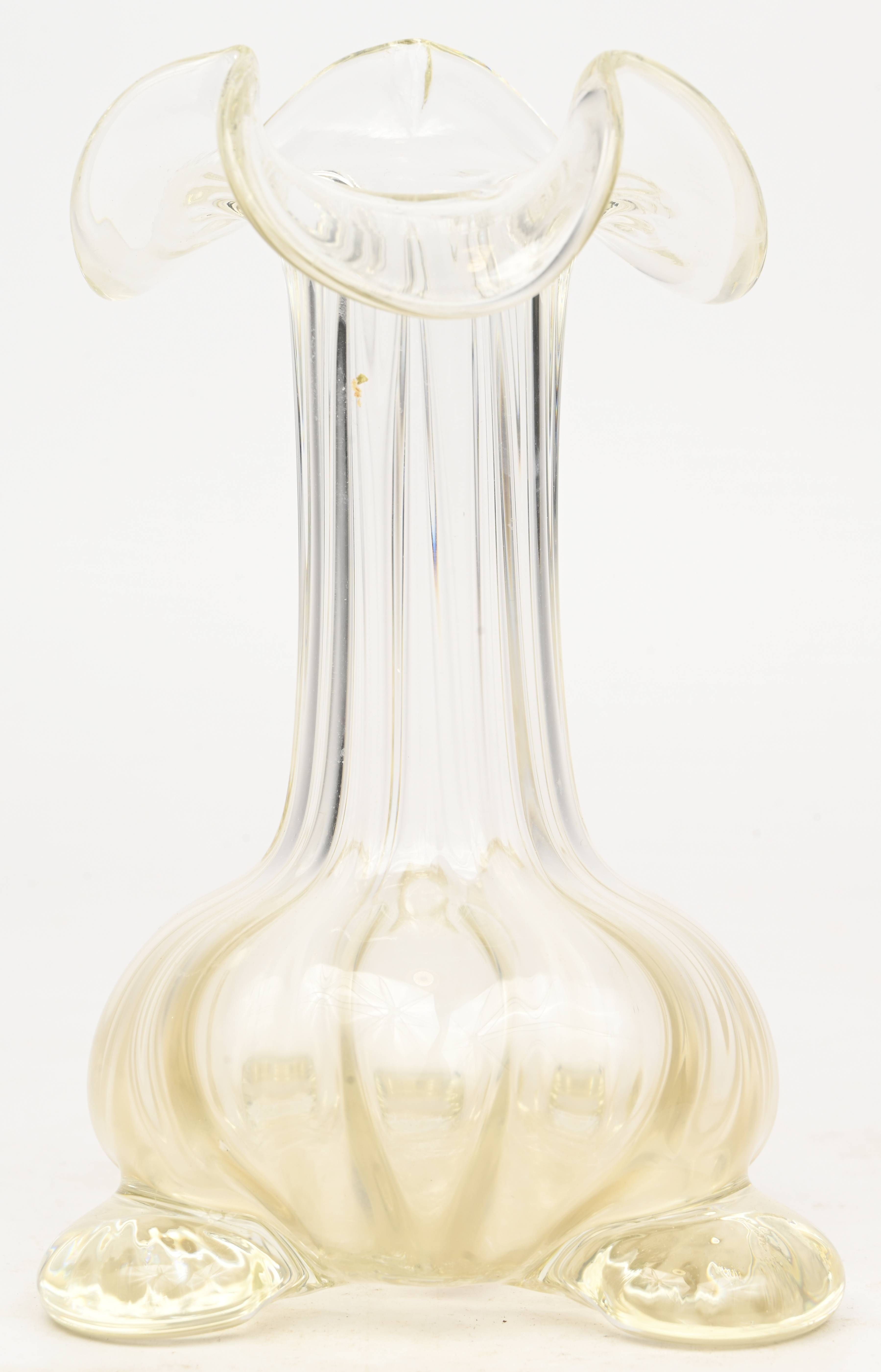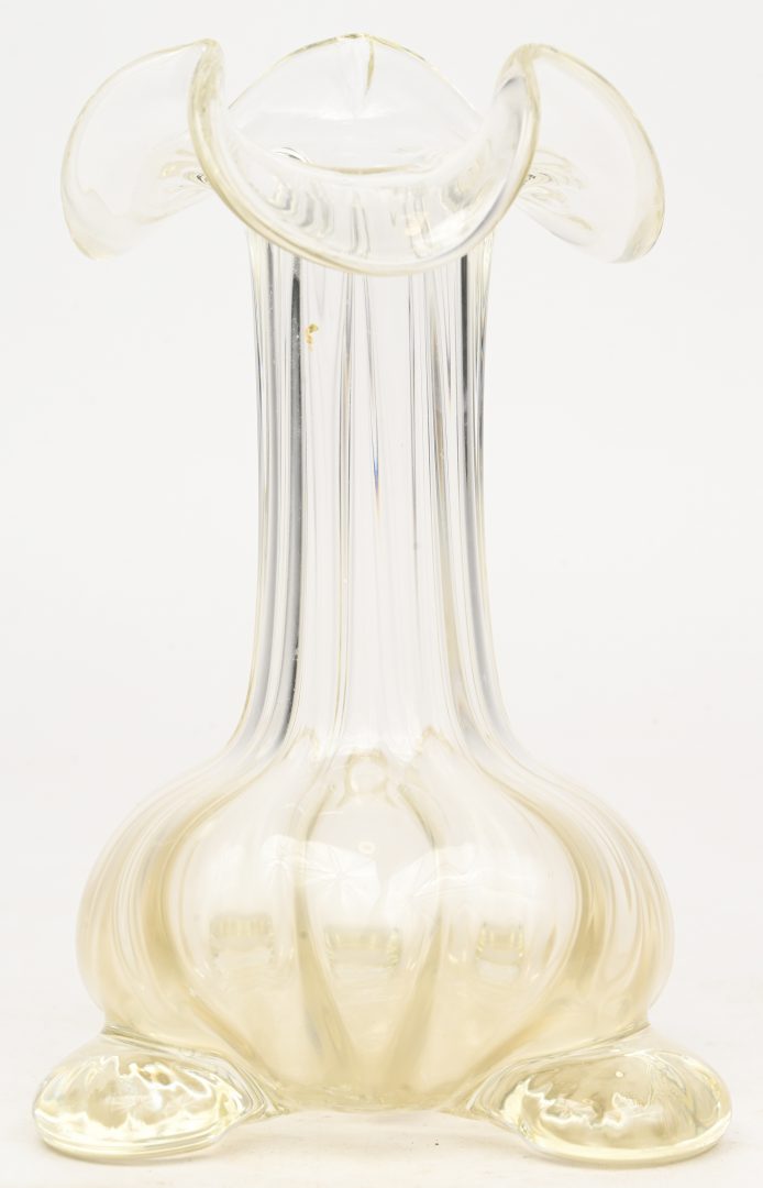 #82Een groen een doorzichtige murano schaal gedragen op filamenten.