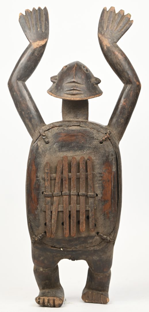 Een muziekinstrument in de vorm van een antropomorfe schildpad.