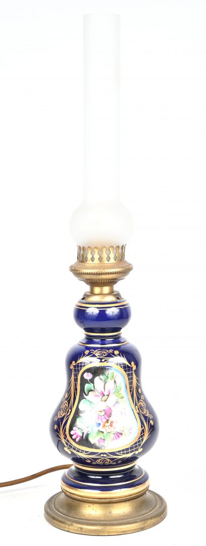 Een tafellamp met kristallen voet, groen in de massa gekleurd, gemerkt VSL.