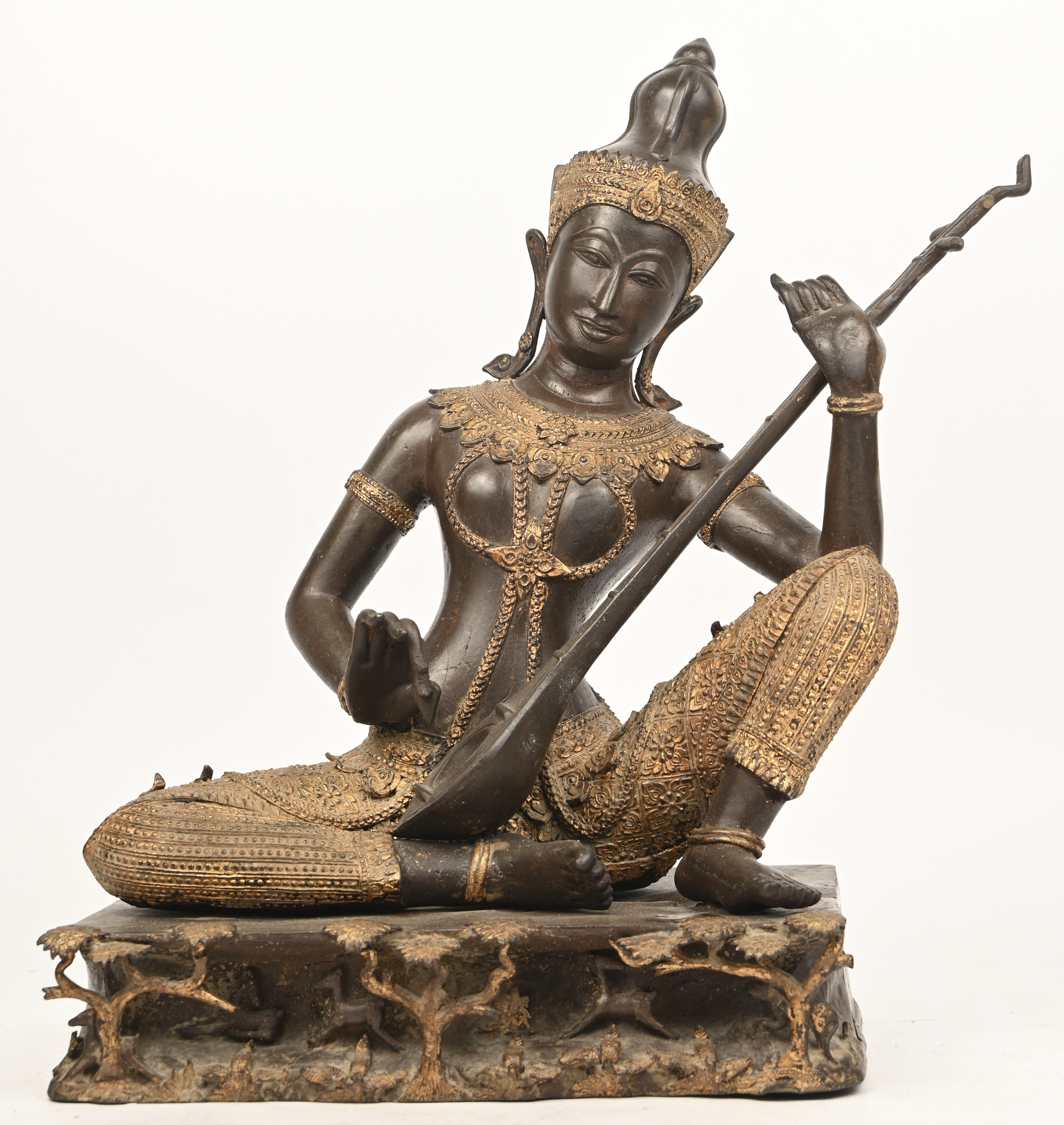 #258Een gepolychromeerde gesculpteerd houten Guanyin beeld.