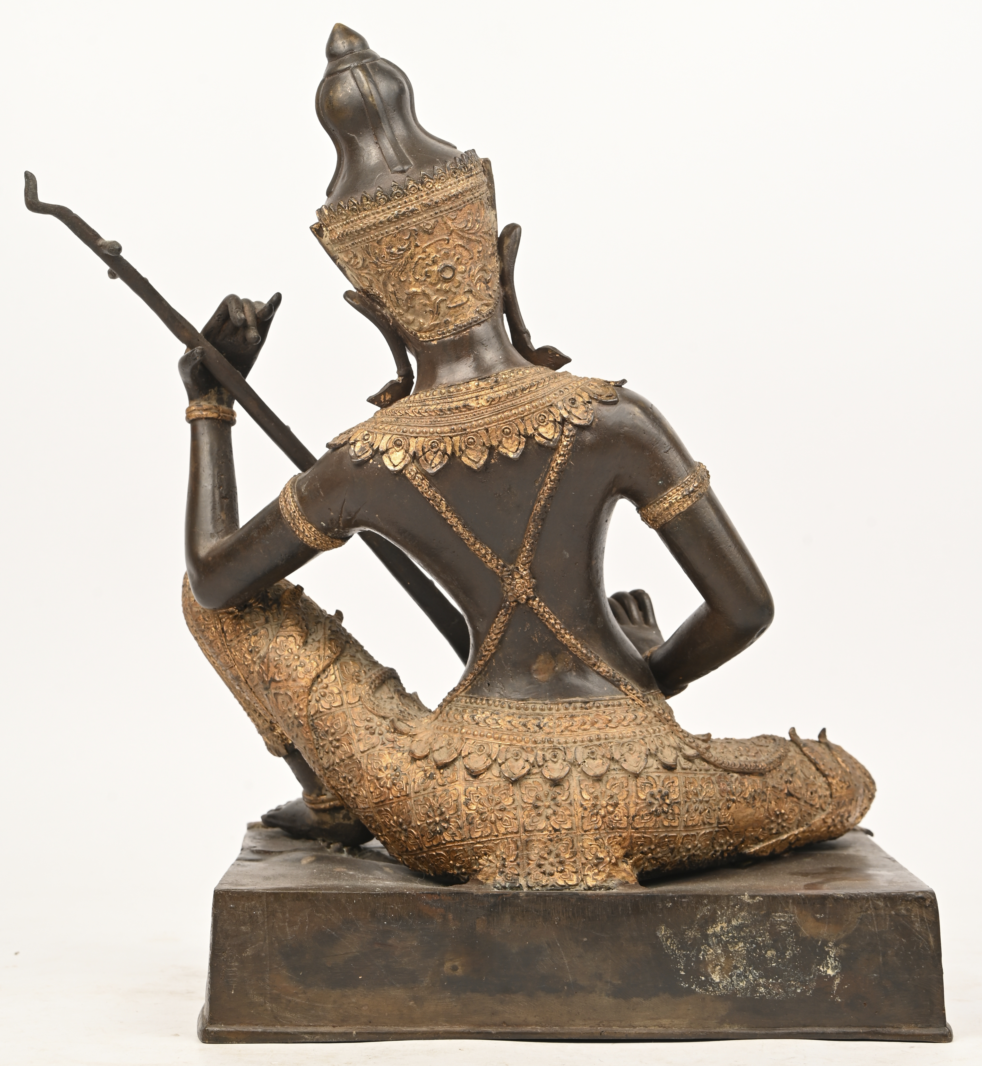 Mère à l'enfant. Une statue en plâtre patiné vert. Signée au dos. -