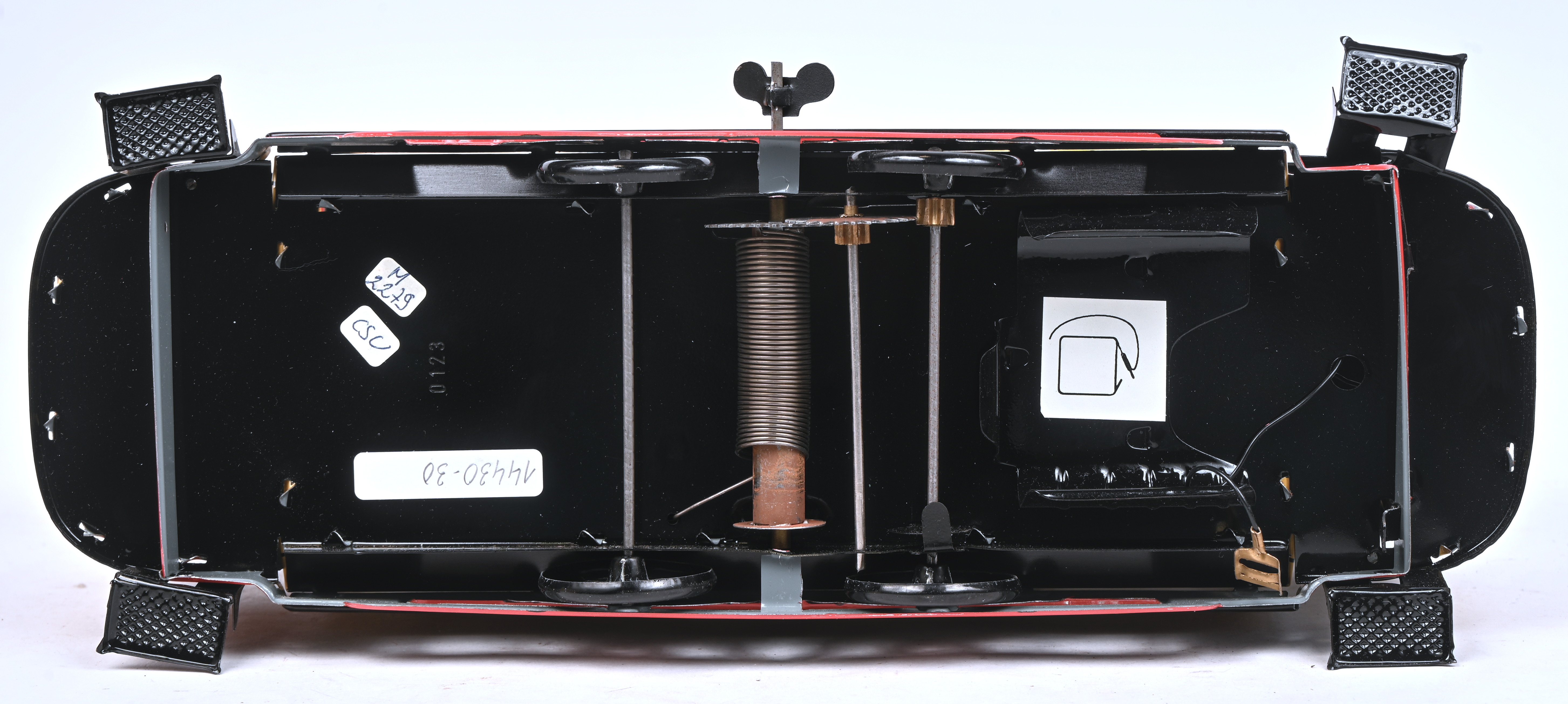 A wind-up tin car with lighting. This piece is a reproduction of a model from 1934-42. No. 317 out of an edition of 5000 copies. With certificate and original packaging.