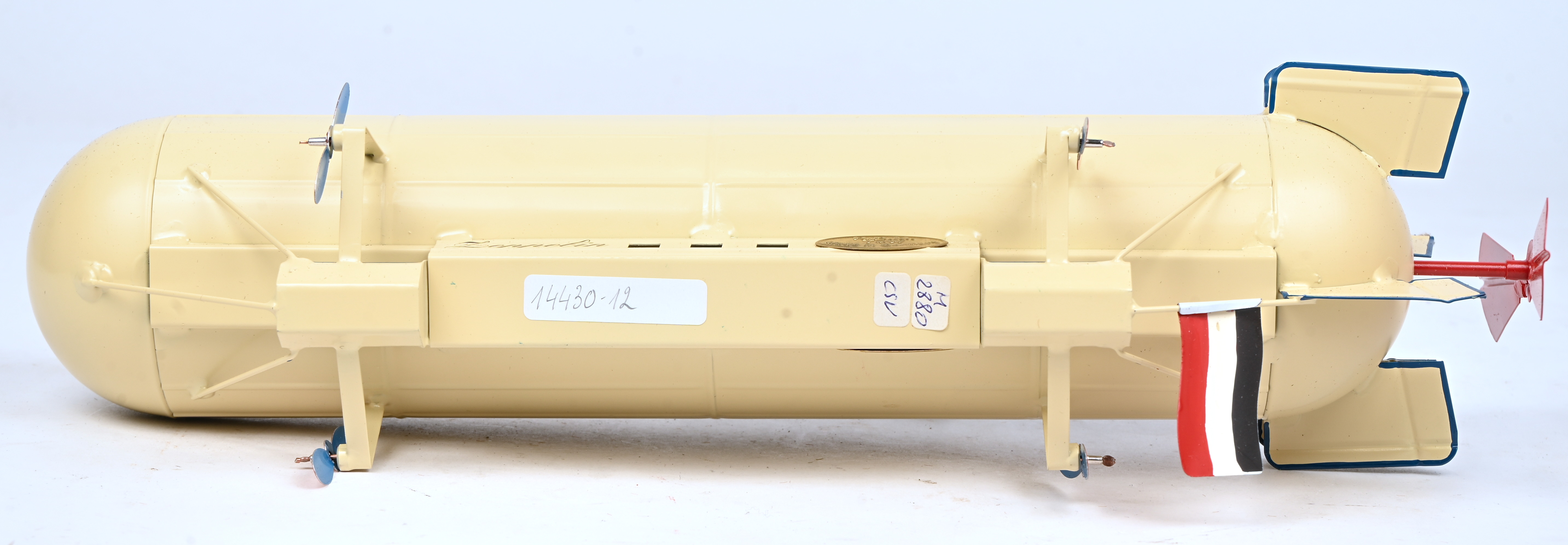 A wind-up tin zeppelin, model T-284. Number 22 out of an edition of 500. With original packaging.