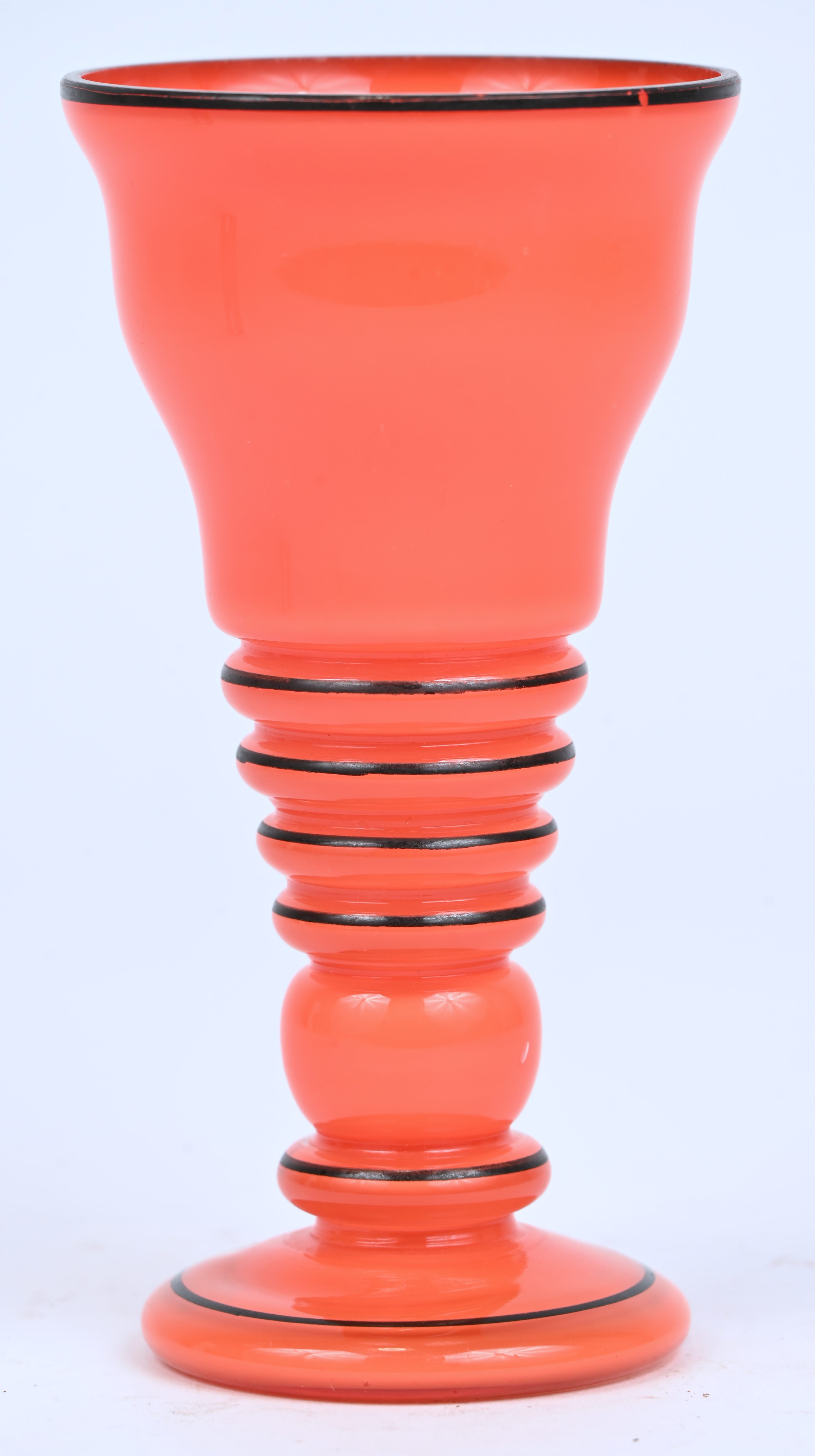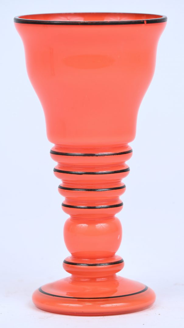 Een oranje glazen art-deco vaasje, mogelijk Loetz.