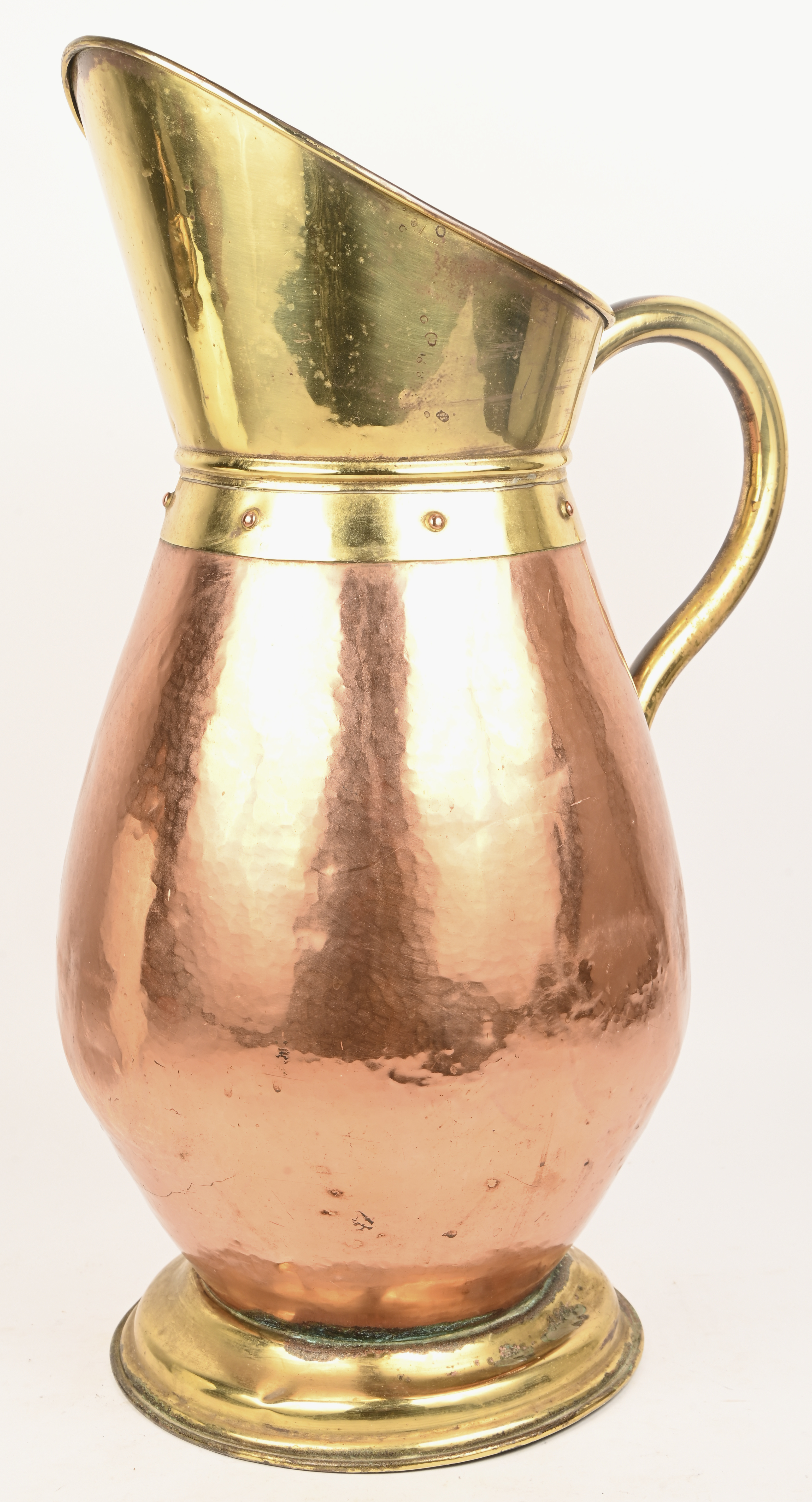 Een paar 19e eeuwse messing kandelaars. Toegevoegd een kamerpan.