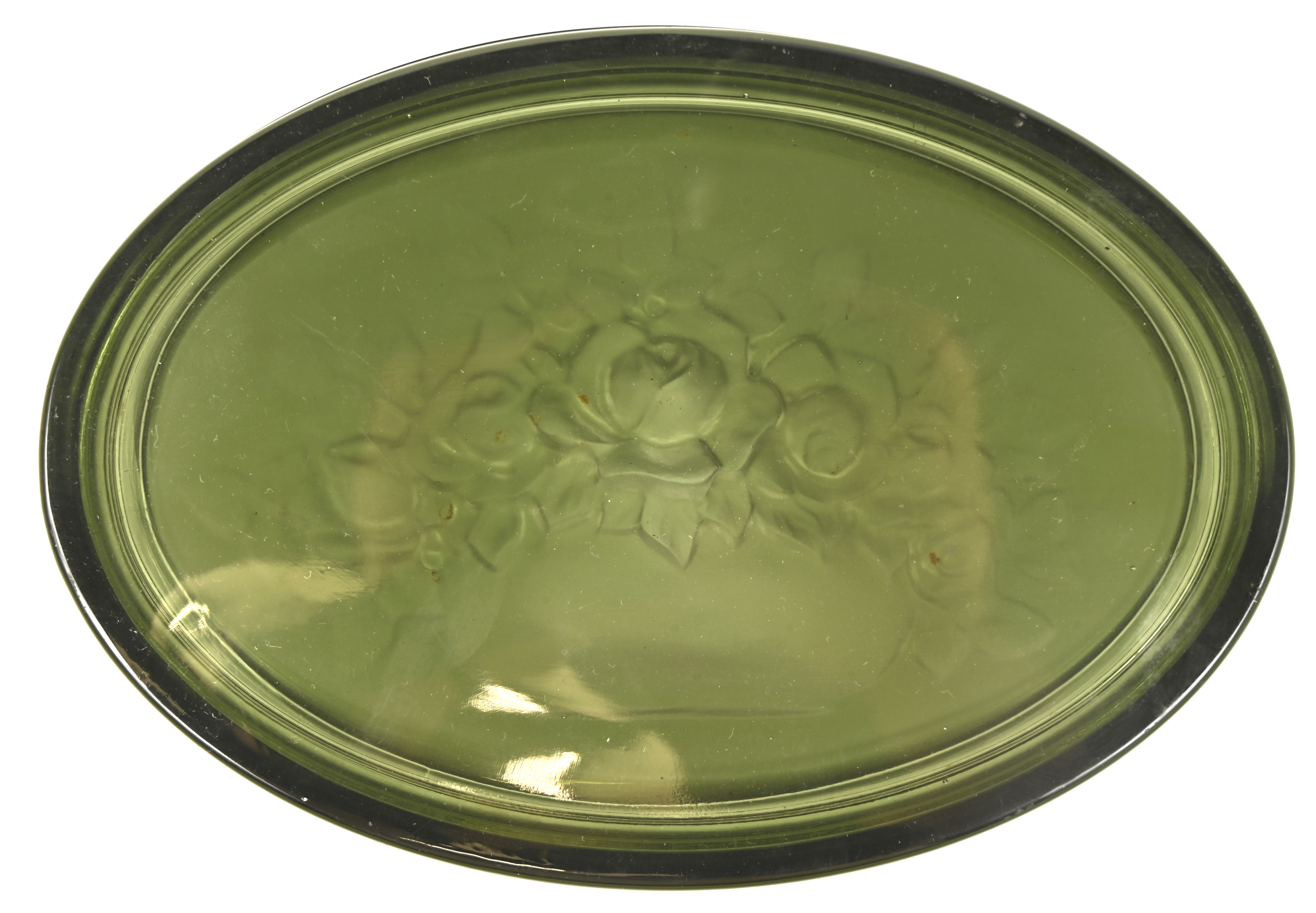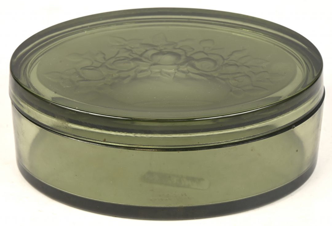 Een vintage schaal van geglazuurd aardewerk. Ontwerp; Jan Van Erp. Met restanten van een zelfklever.