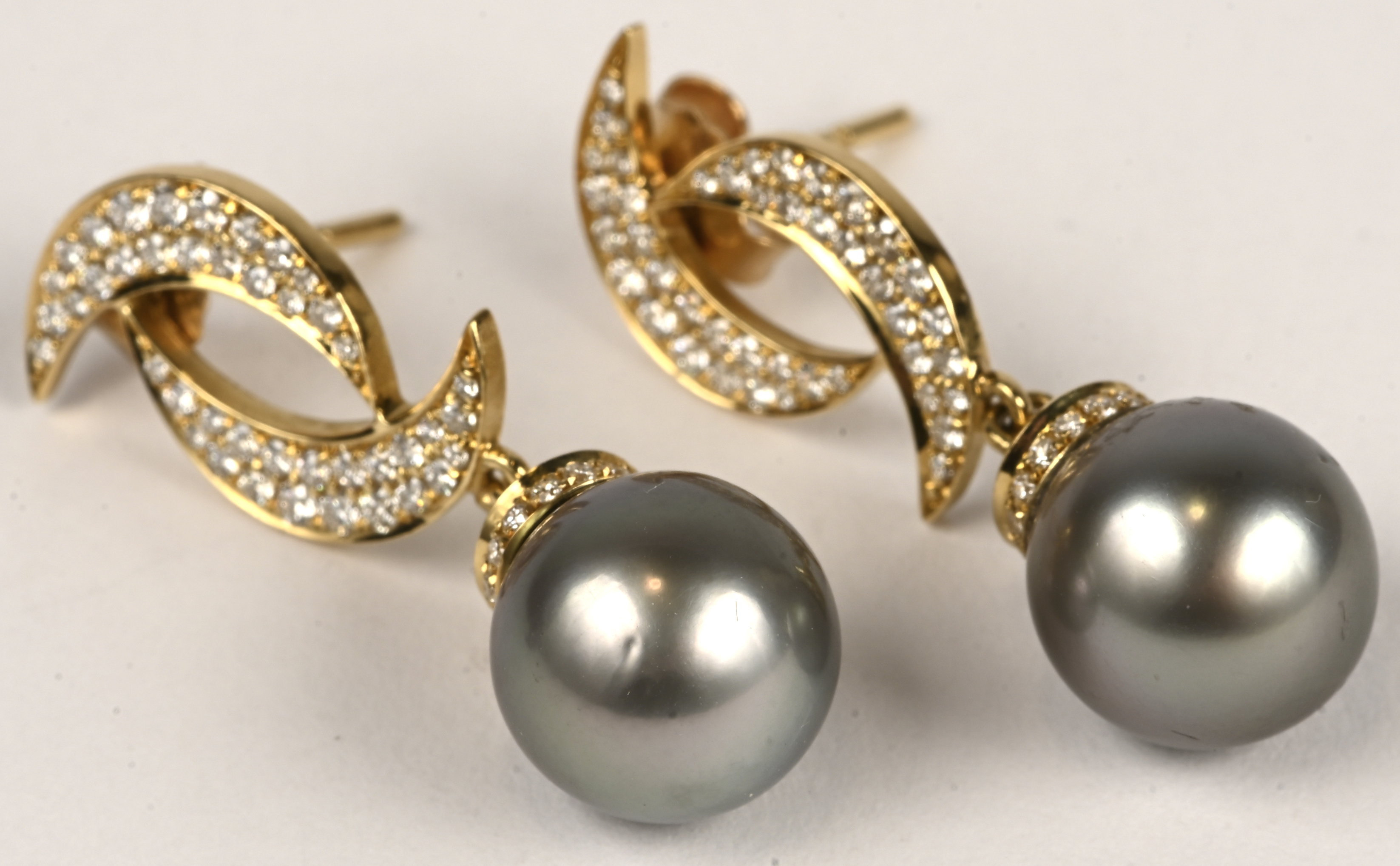 An 18 kt white gold pendant set with white diamonds top Wesselton VVS-VS weighing a total of 0.68 ct. Ocean Blue diamonds 0.13 ct. Sky Blue diamonds 0.99 ct and Ice Blue diamonds 1 ct. 195 diamonds with a total weight of 2.80 ct.No longer availableDim. 21,20 gEstimate: € 2000 / 2200 -