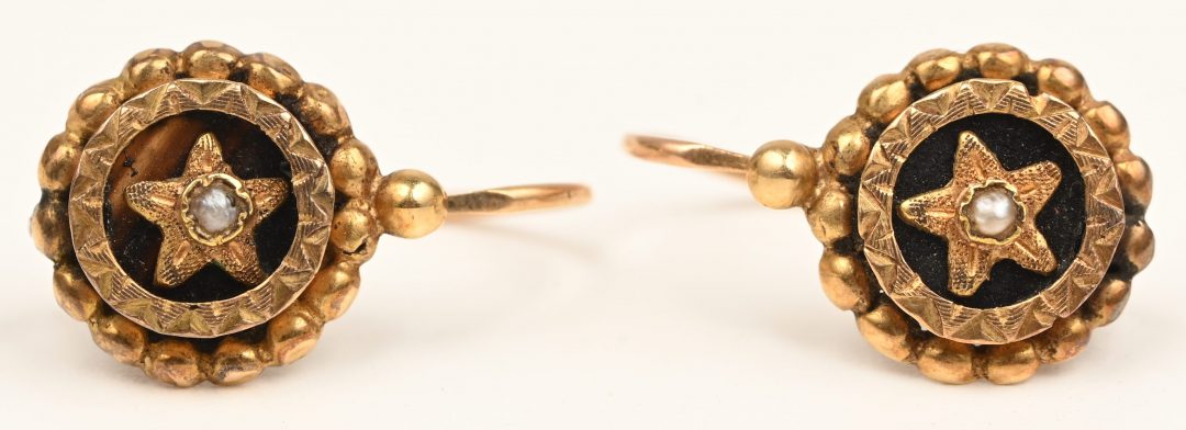 Een paar 18 kt geelgouden oorbellen bezet met twee fijne parels.