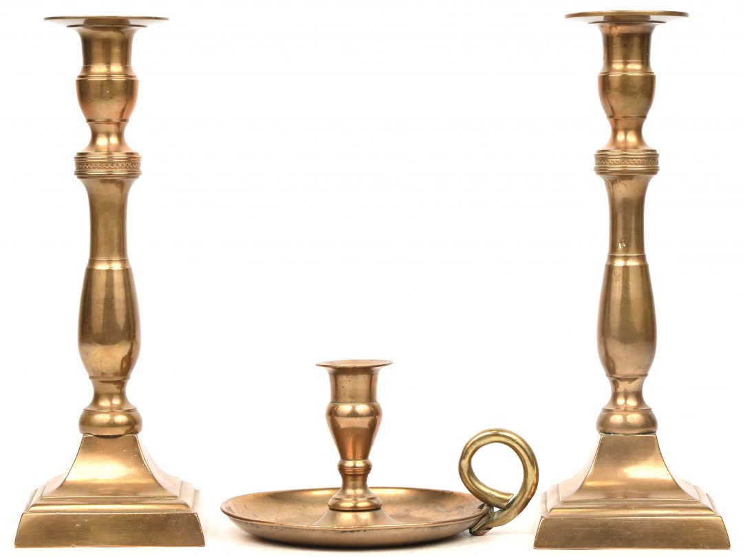 Een lot van 4 koperen kandelaars, 3 made in Italy en één 19e eeuwse.