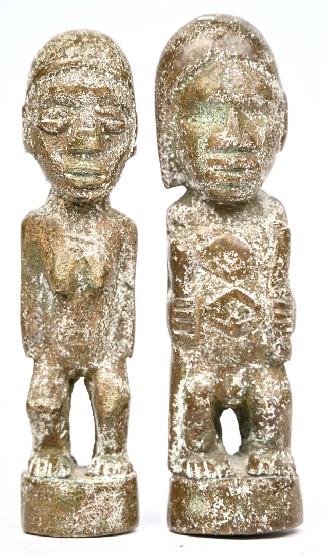 "Pair", a gray glazed earthenware sculpture, attributed to Elie Van Damme. Head glued. -