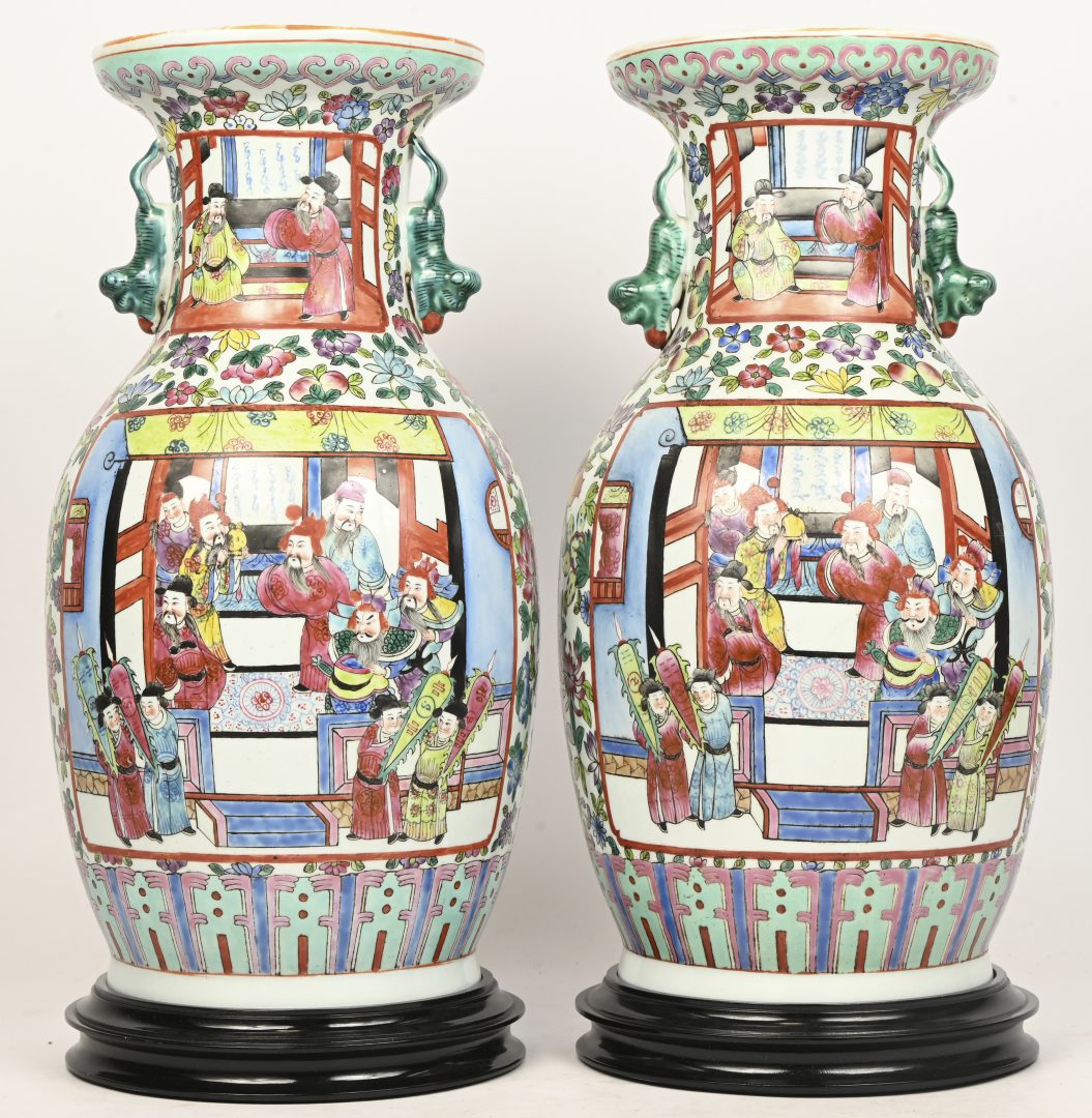 Een 19e eeuwse Chinees porseleinen Canton dekselvaas, famille rose.