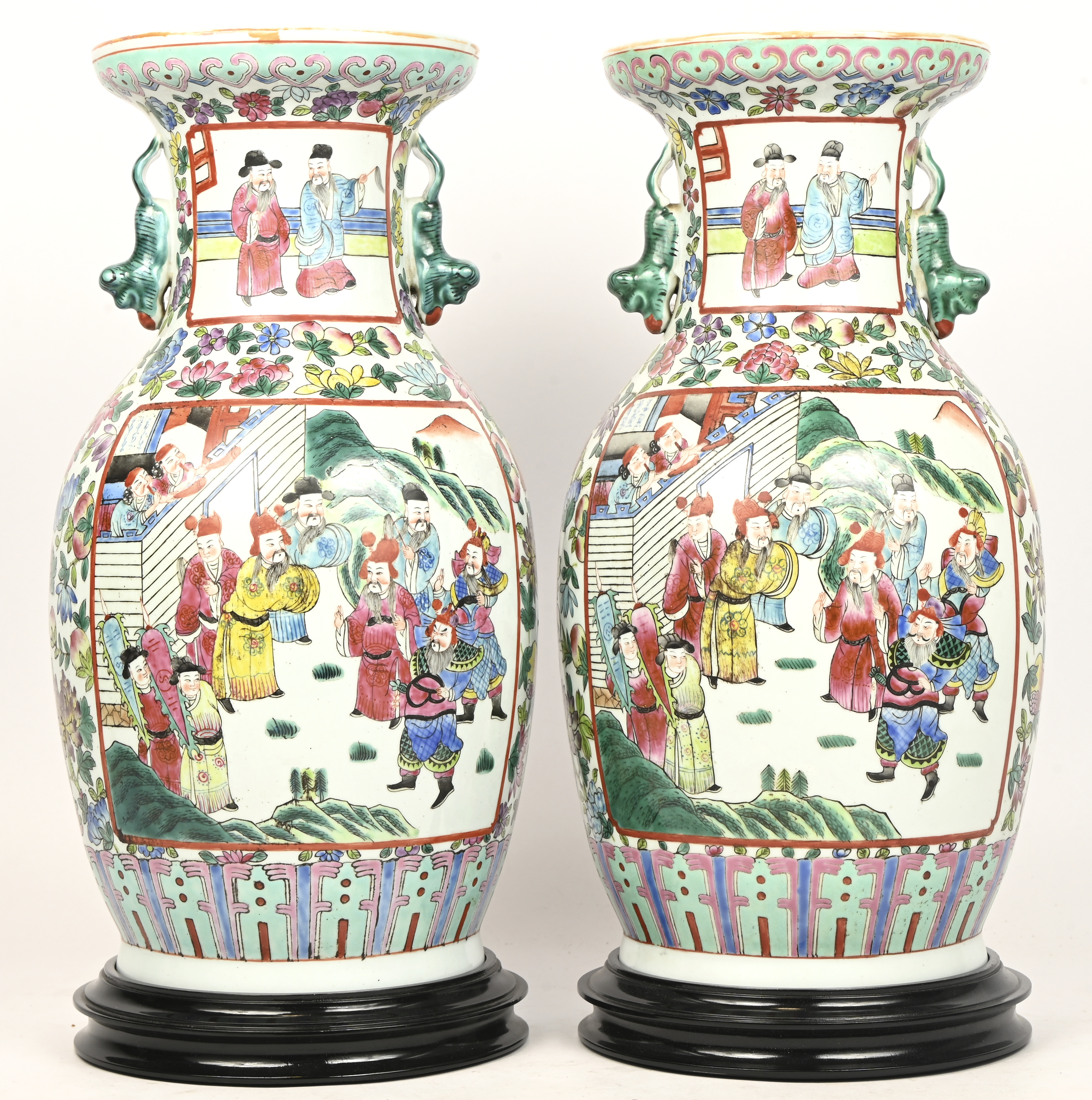 Een set van 2 Chinese blauw-witte porseleinen vazen met kinderen in het decor.