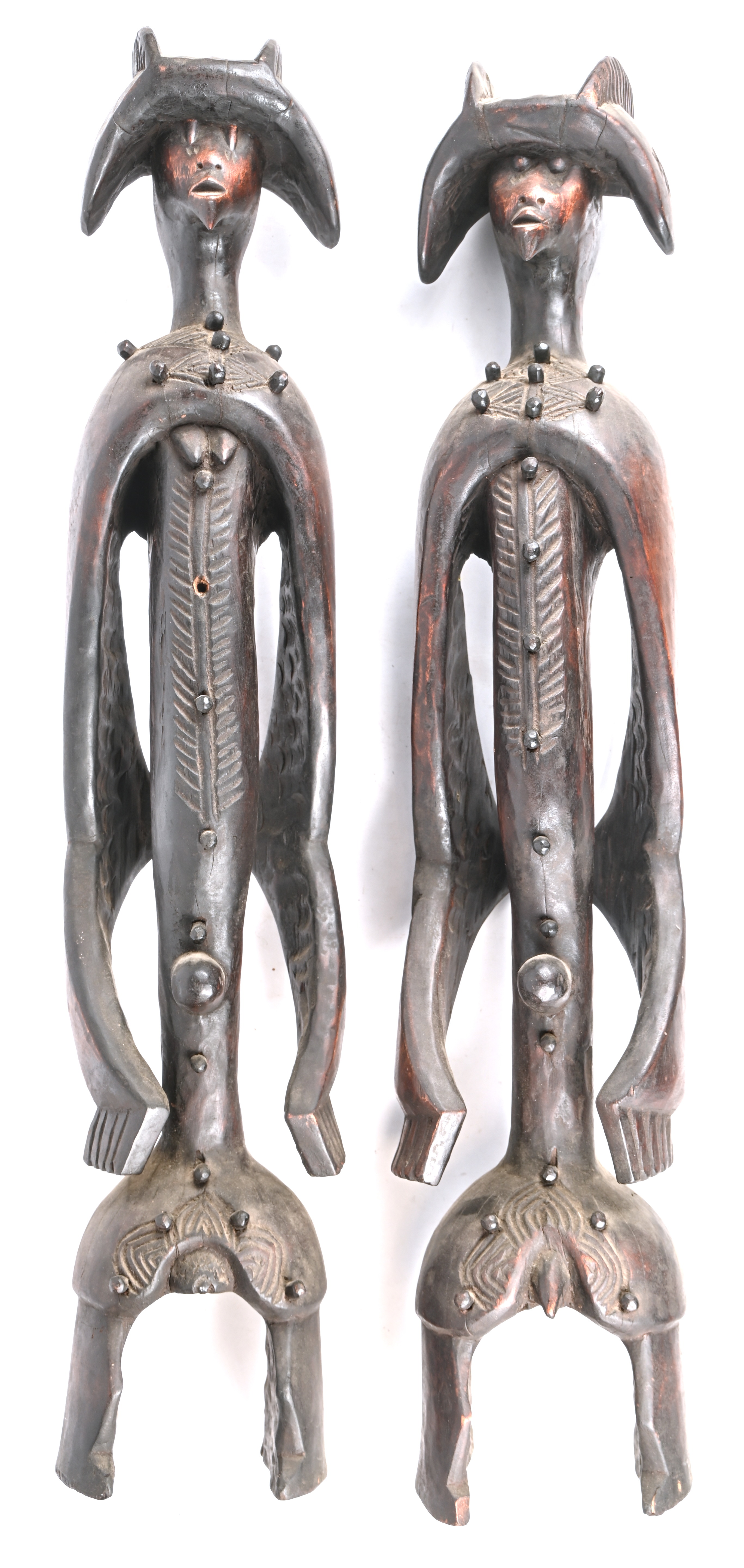 #516Een set van 2 hoge Chinese bijzettafeltjes, gesculpteerd hout met elk 4 draken in het decor.