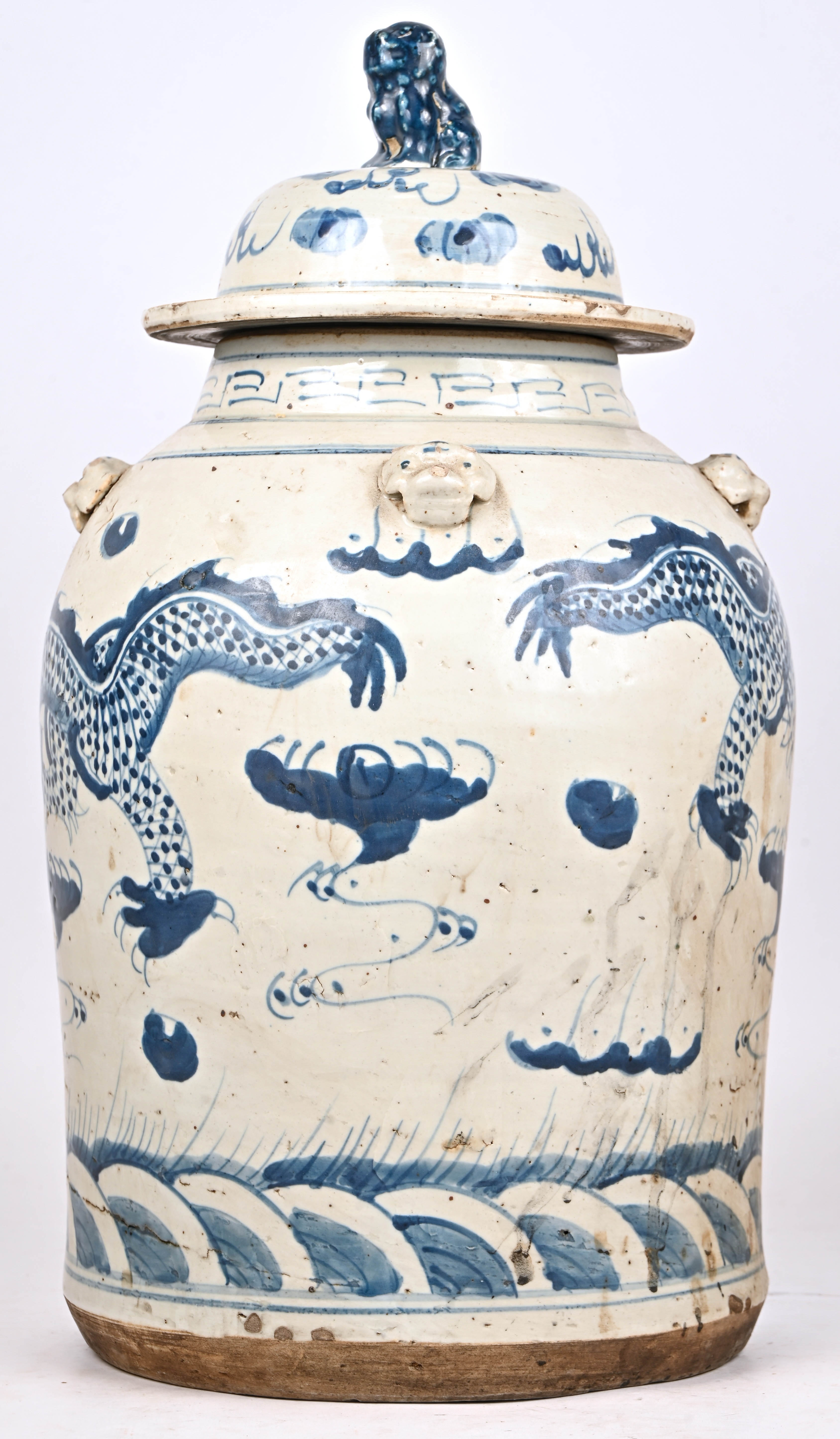 #76Een antieke massief eikenhouten koffer met slot. Met opschrift I.M.D.W.I 150.