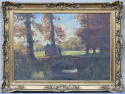 #99“Bruggetje met kapel”. Een schilderij, olieverf op doek.