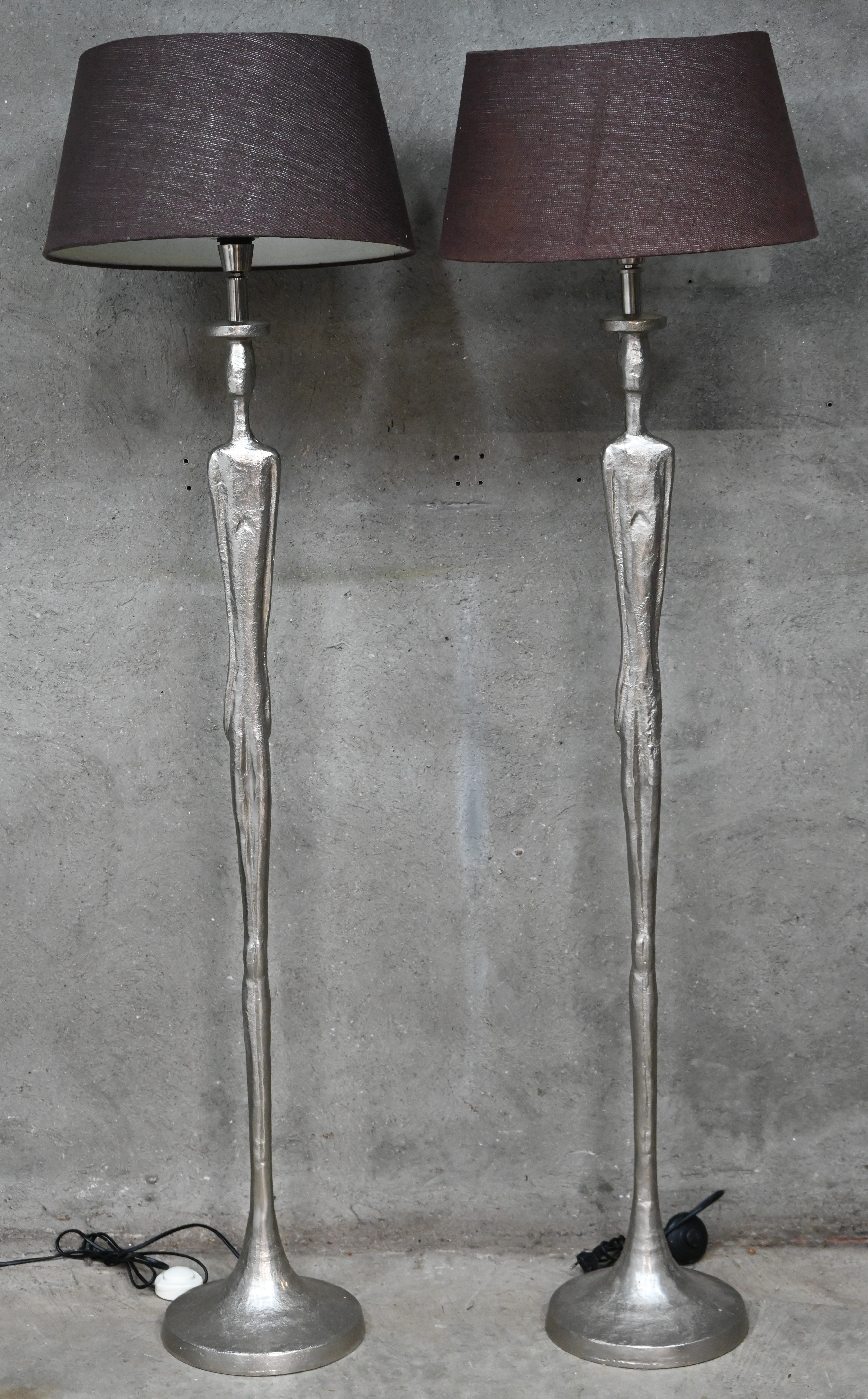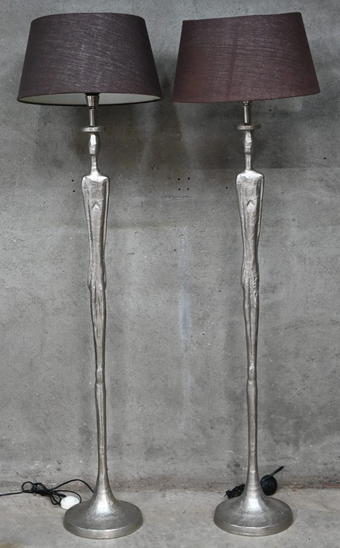 #128Een set van 2 design tafellampen, metalen lampenvoet met bebaarde man en lampenkap met rits.