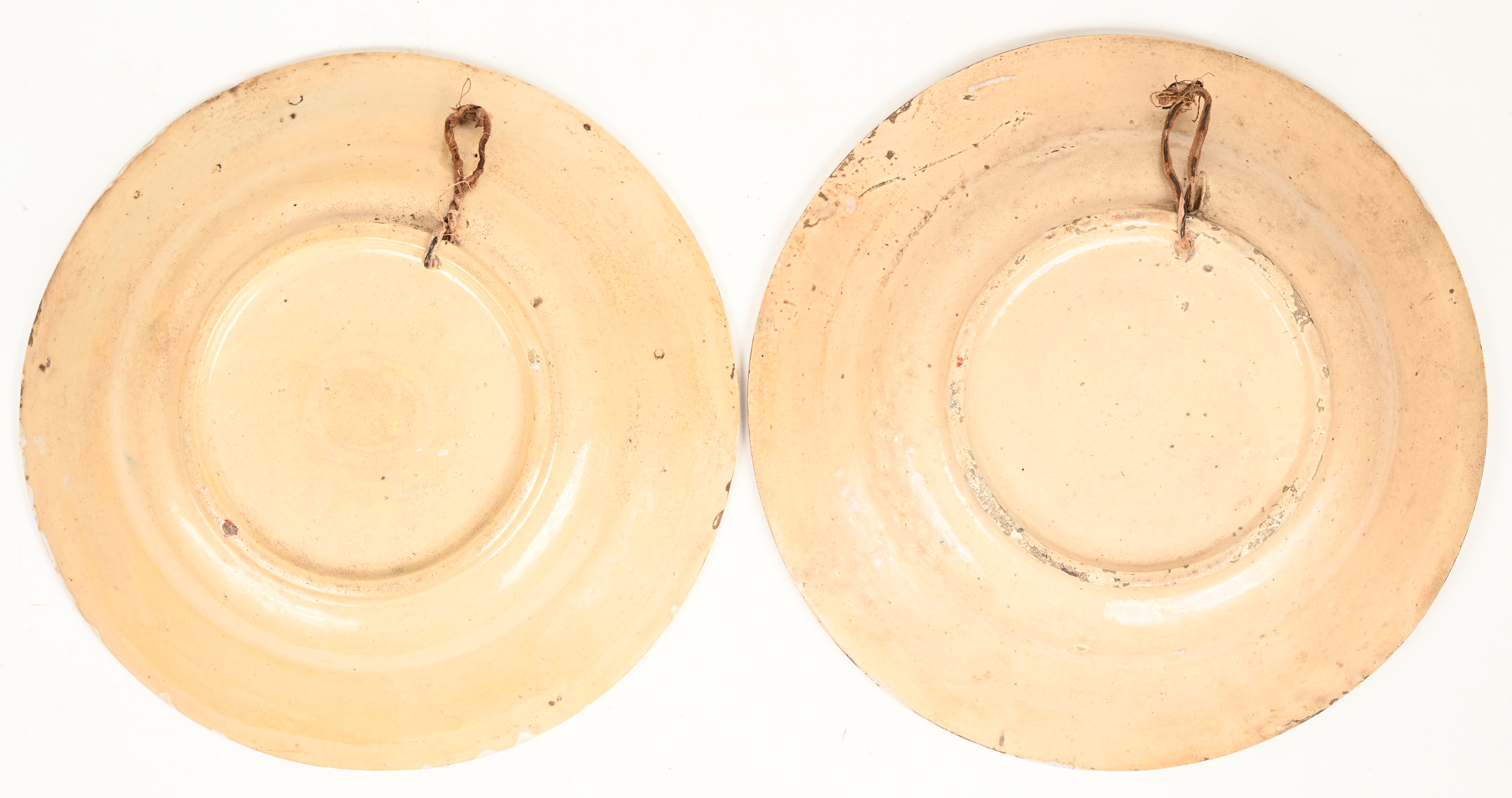 #35Pieter PortersEen set van vier aardewerken bloempothouders, uit de collectie; House Of Porters. Ecrukleurig beschilderd en versierd met schelpjes. Van het grootste paar zijn enkele schelpjes manco.