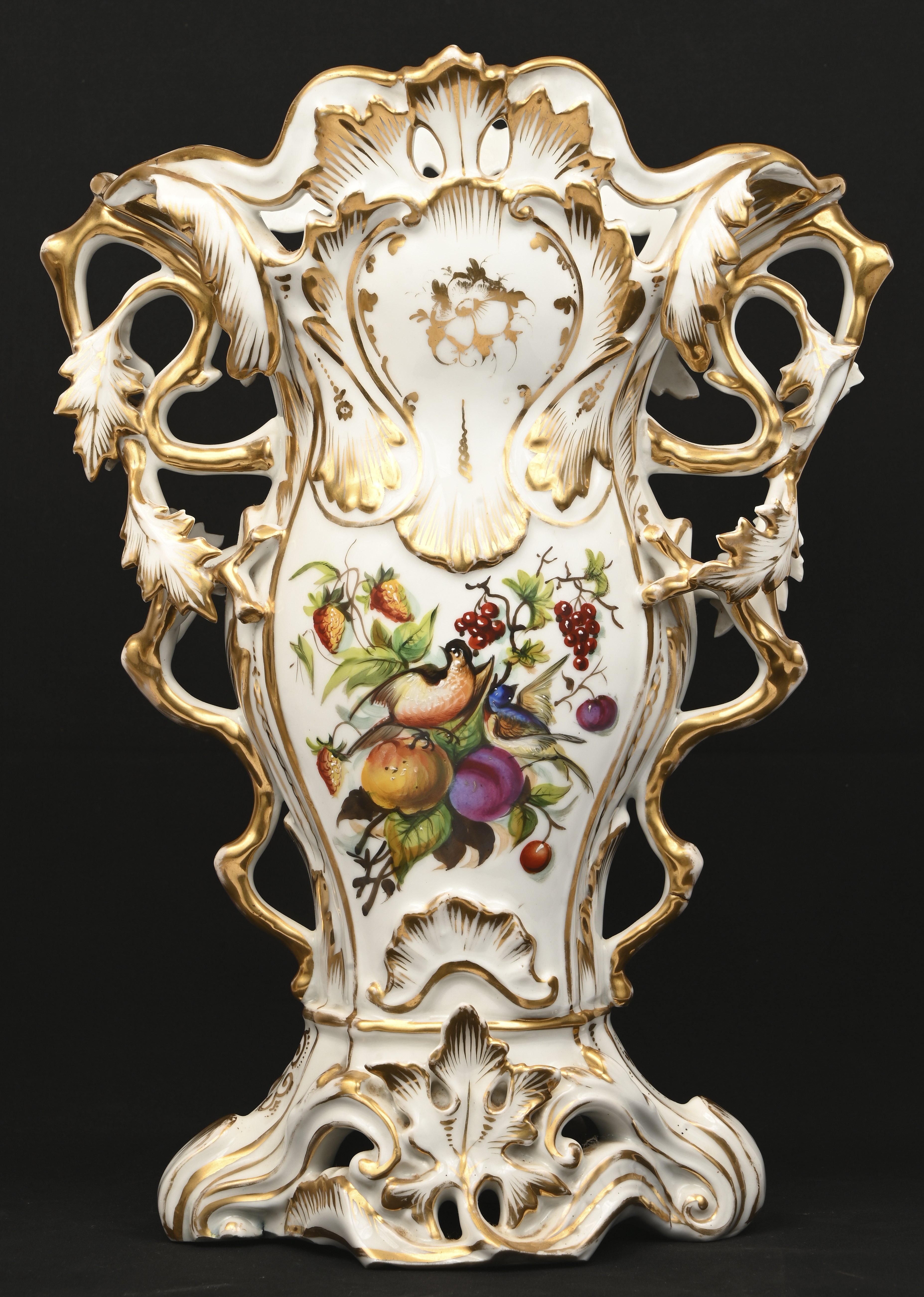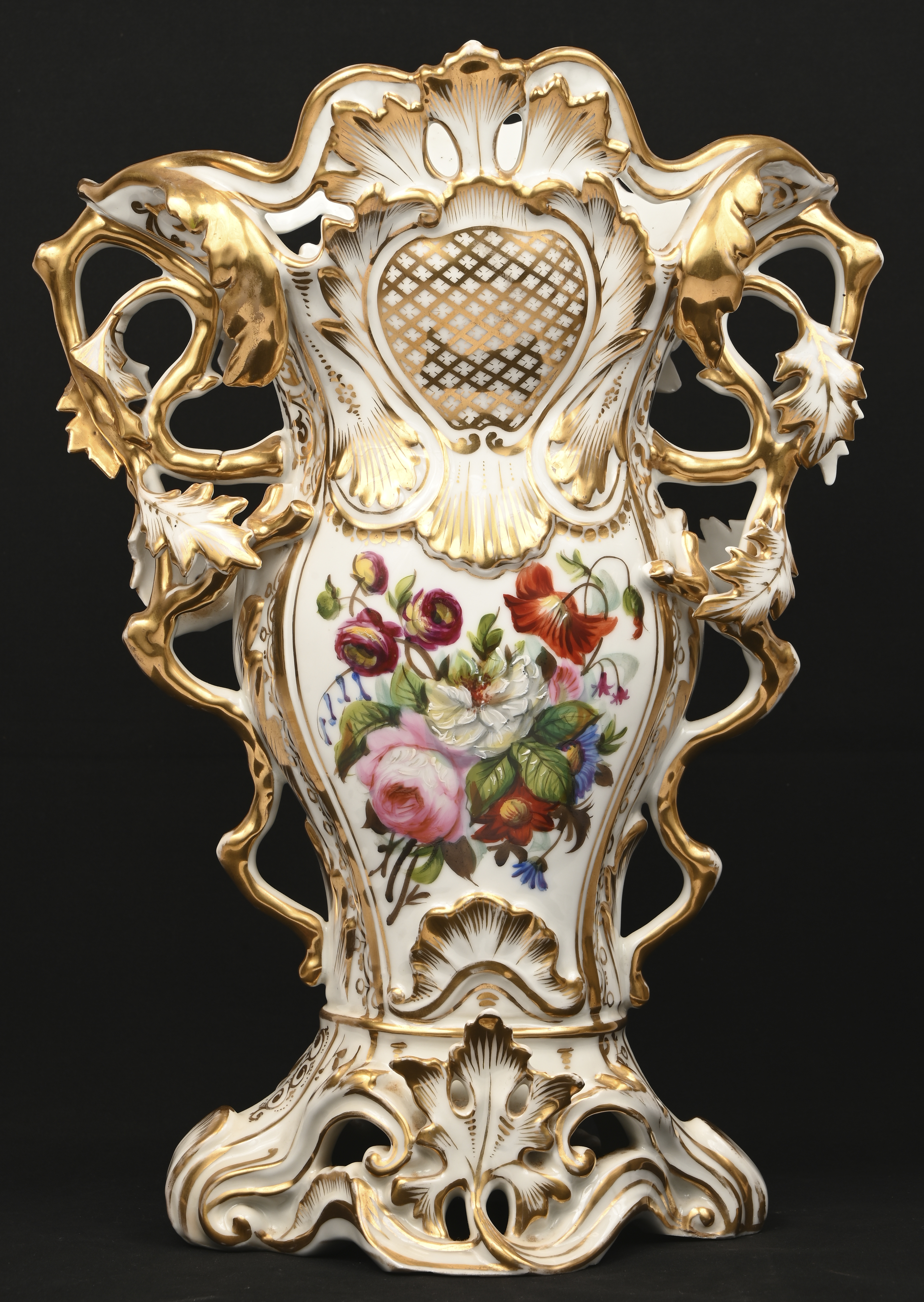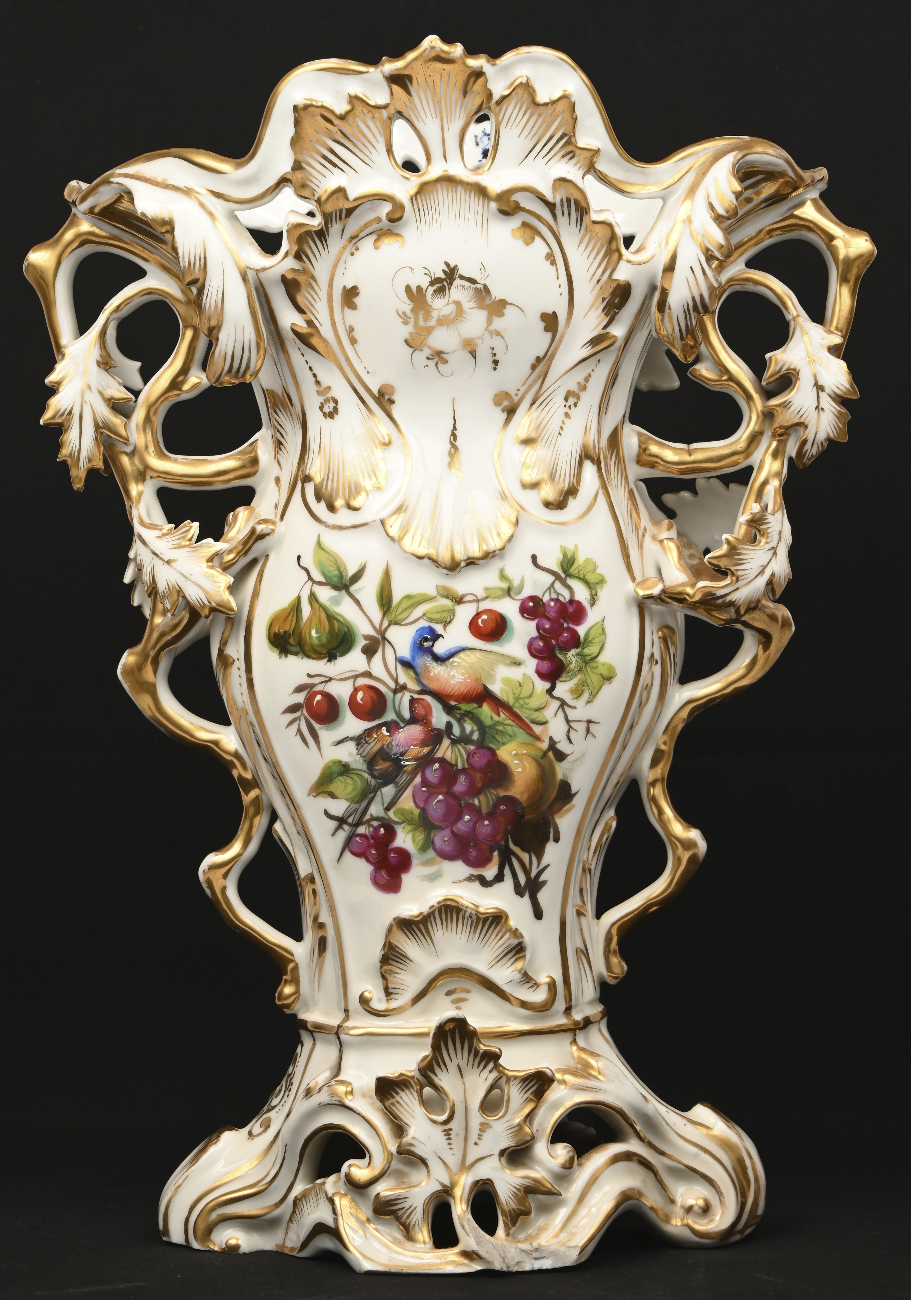 A lot of two 19th-century figurines, multi-colored porcelain, in the style of Meissen, unmarked. Also included is an angel and a cornet vase.No longer availableDim. h 29 cmEstimate: € 80 / 120