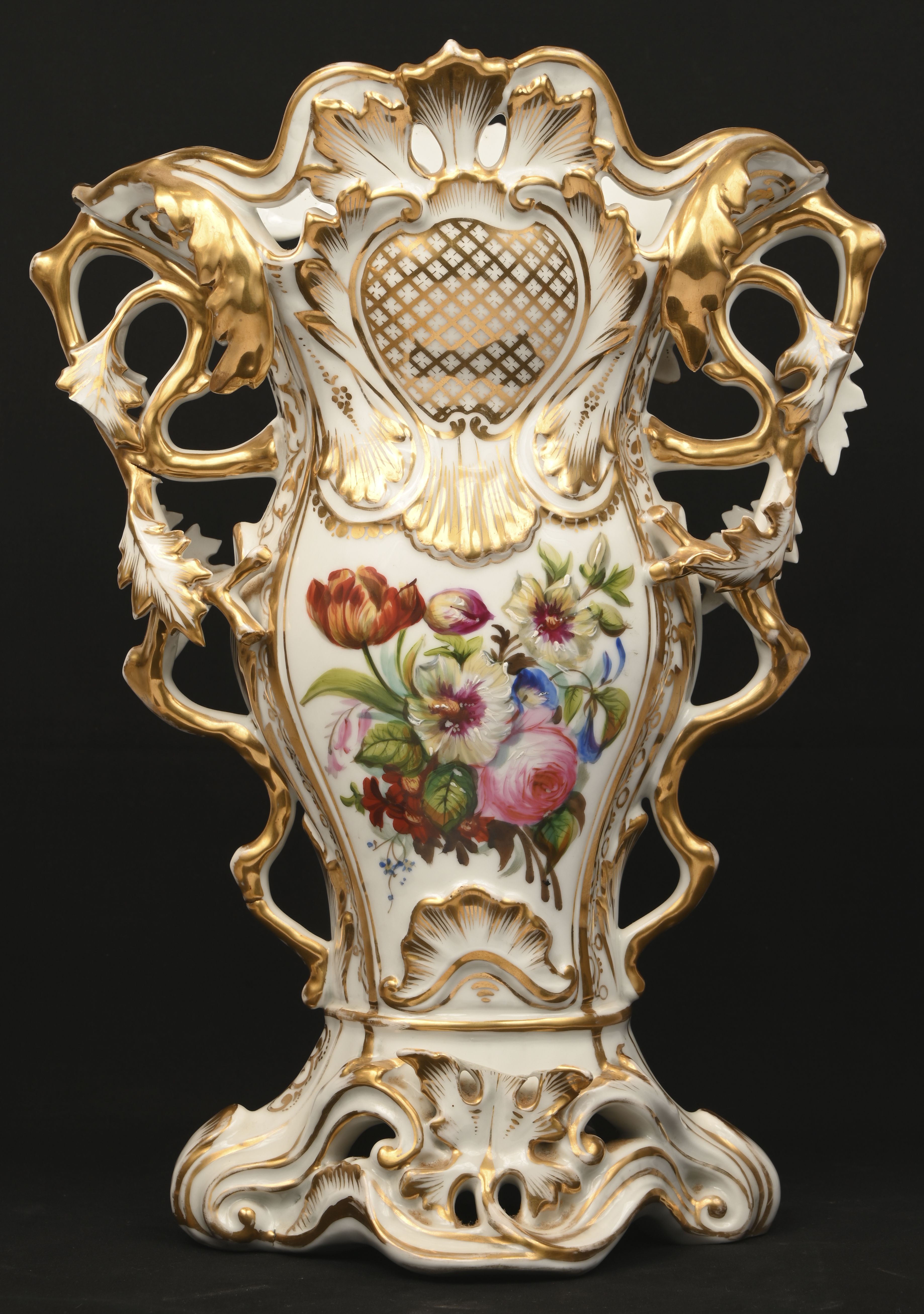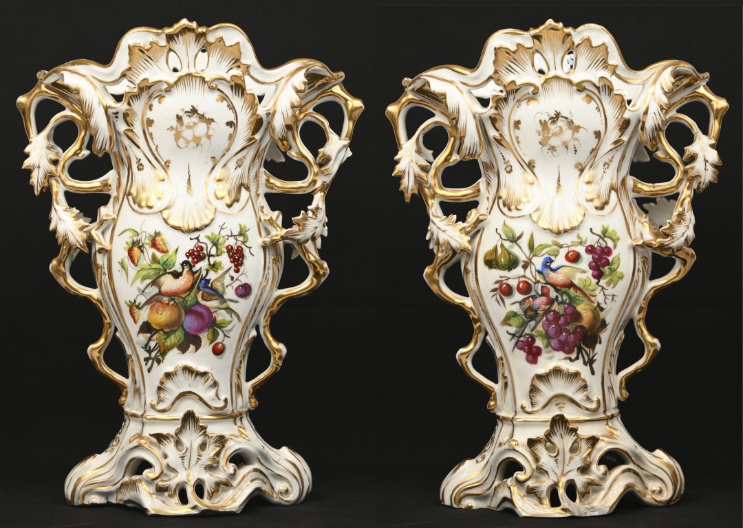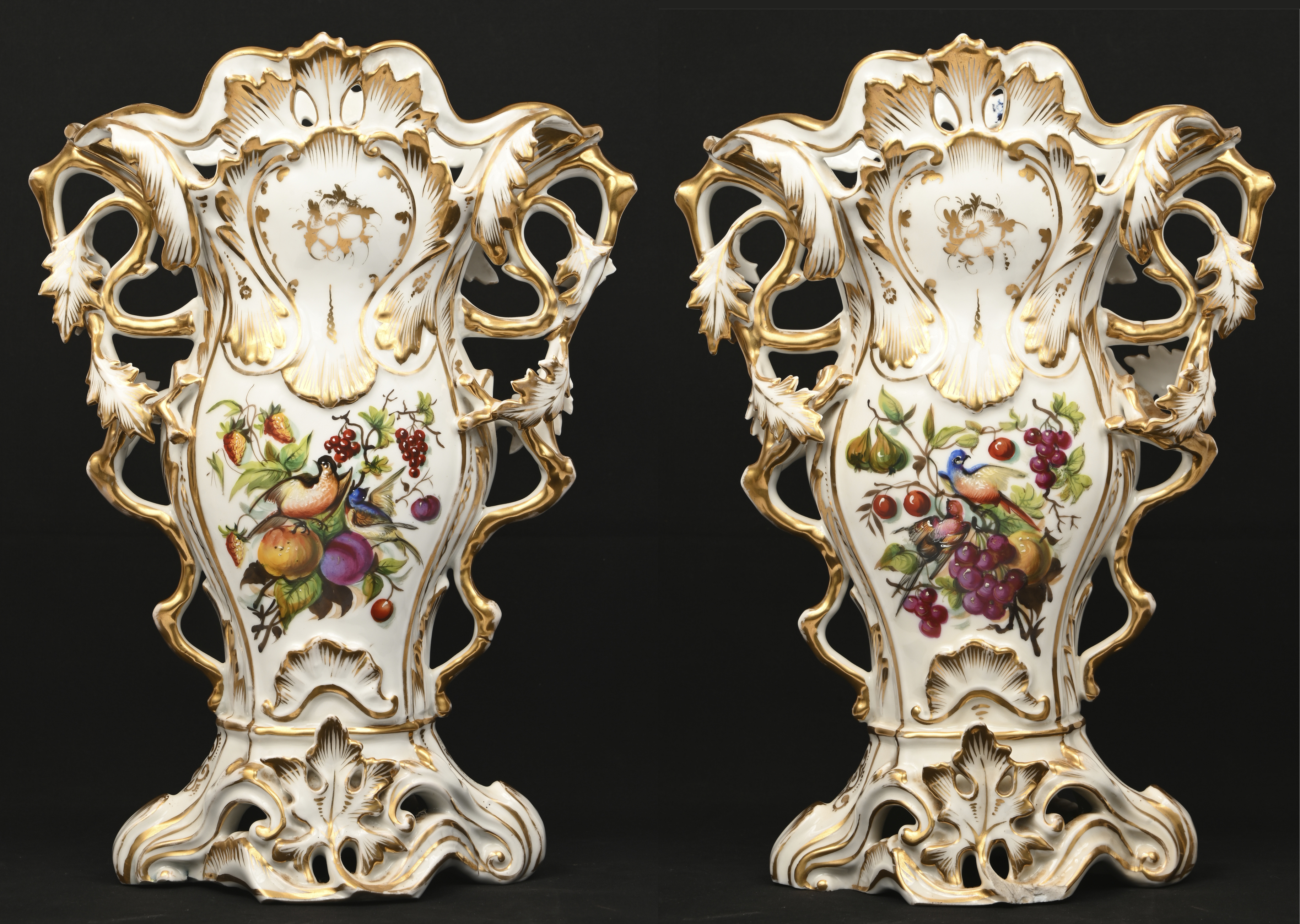 A lot of two 19th-century figurines, multi-colored porcelain, in the style of Meissen, unmarked. Also included is an angel and a cornet vase.No longer availableDim. h 29 cmEstimate: € 80 / 120