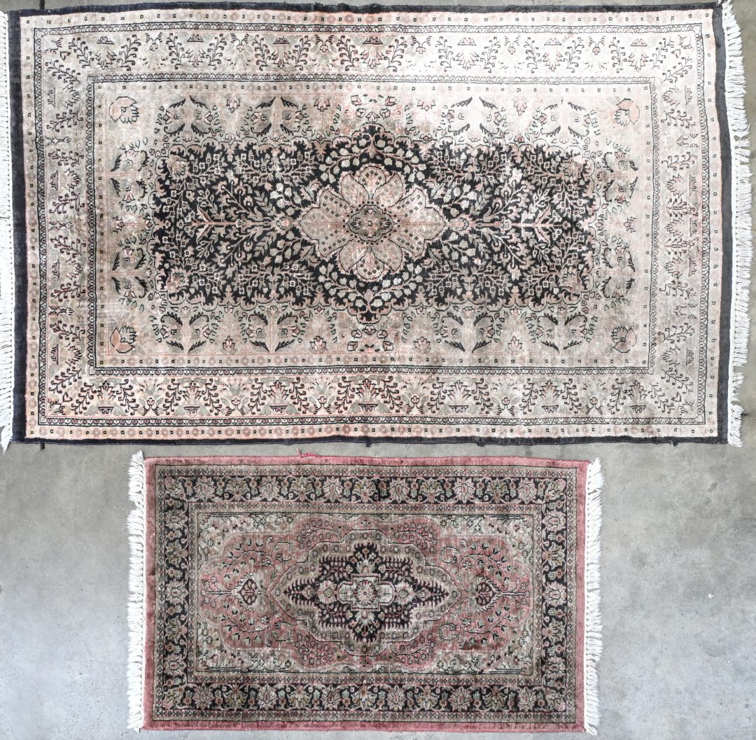 Een paar Indische handgeknoopt zijden tapijtjes.