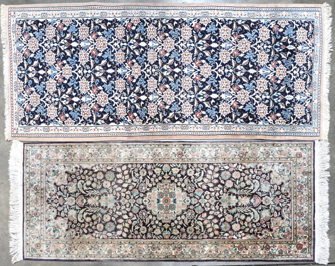 A hand-knotted Oriental runner, mixed silk and wool. -