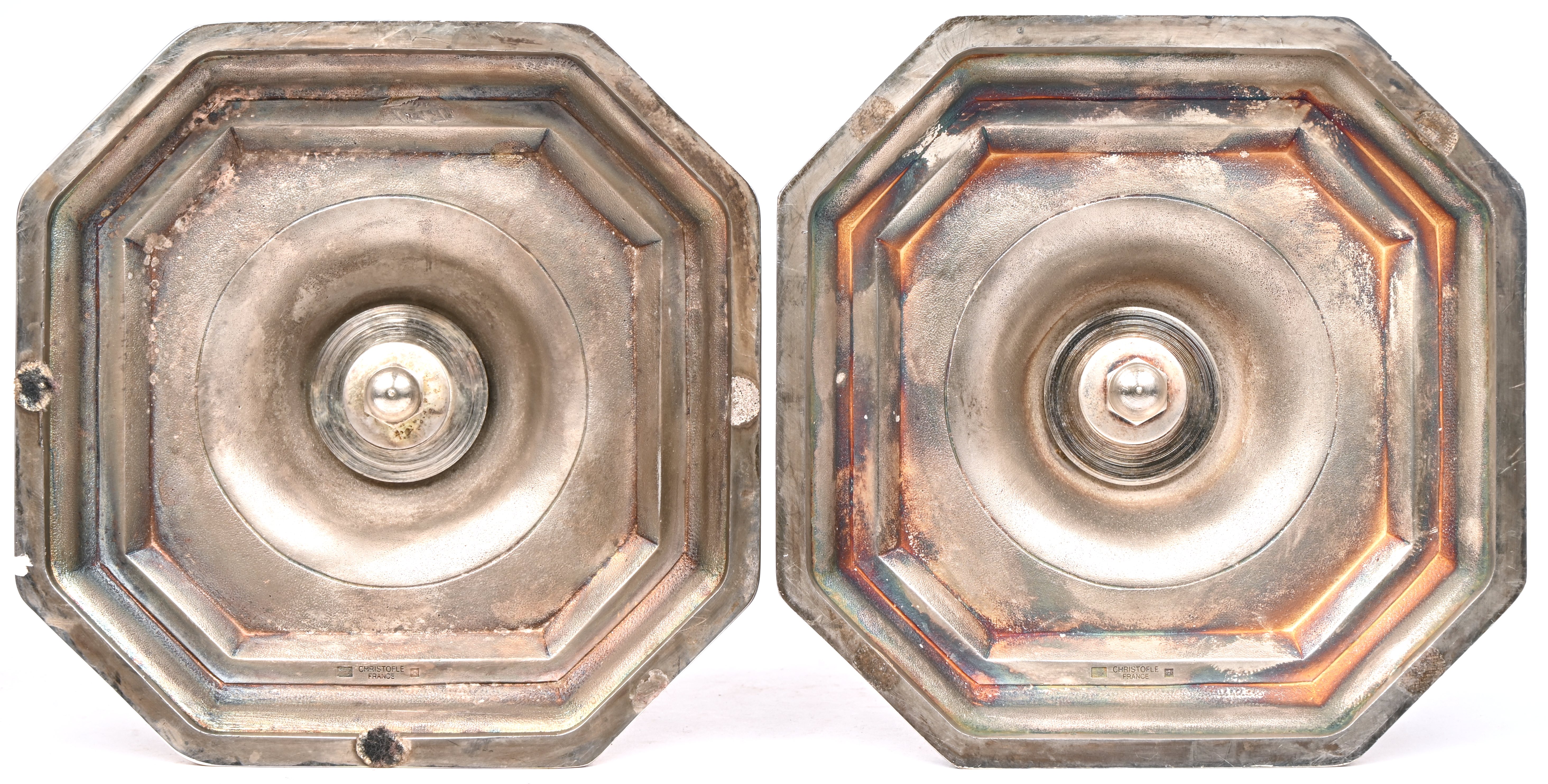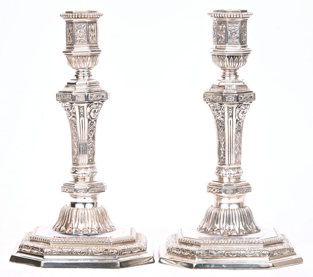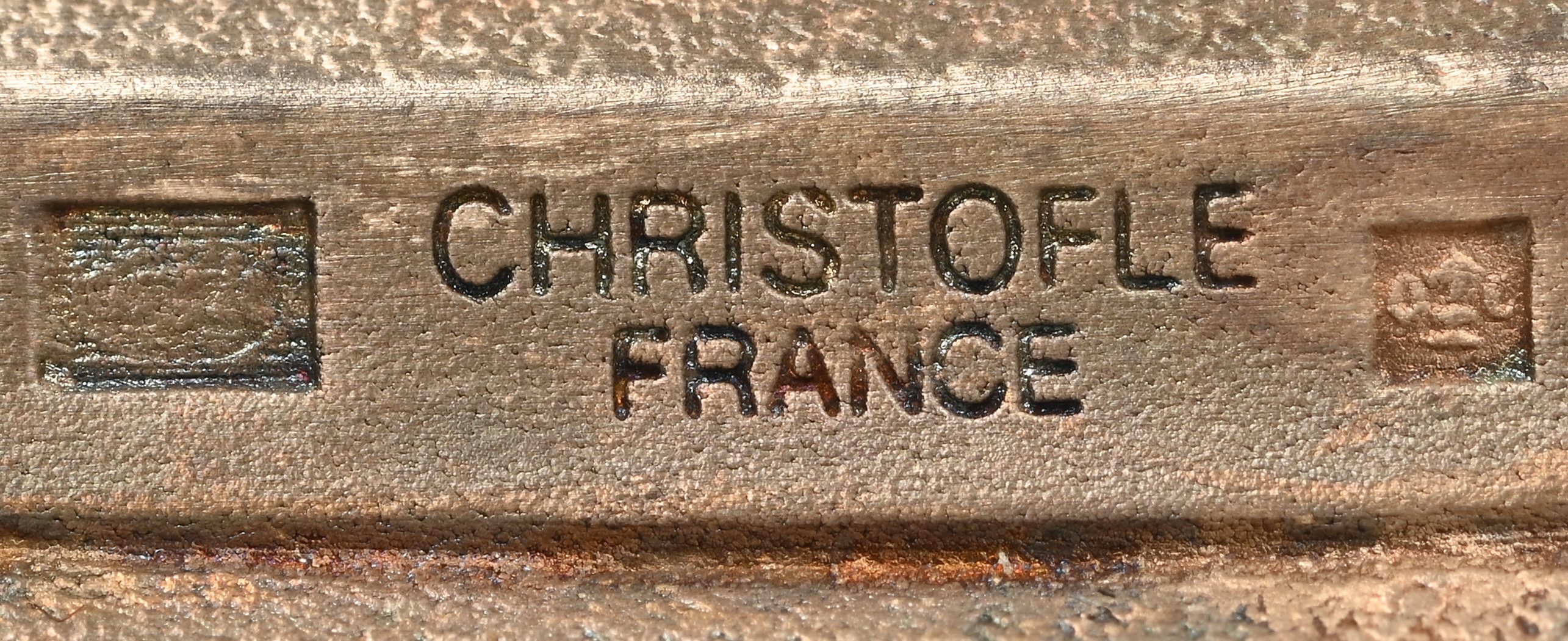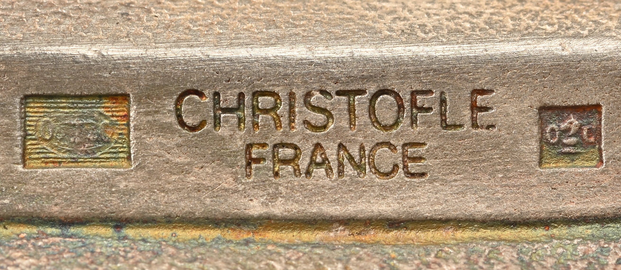 Een milieu de table, verzilverd metaal met een decor van rozen en een geslepen glazen coupe.