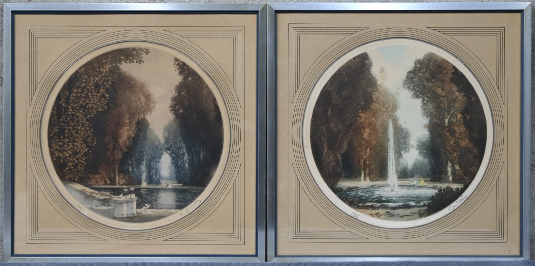 #243“Hoeve en bruggetje”, een lot van 2 etsen, gesigneerd J. Matthys.