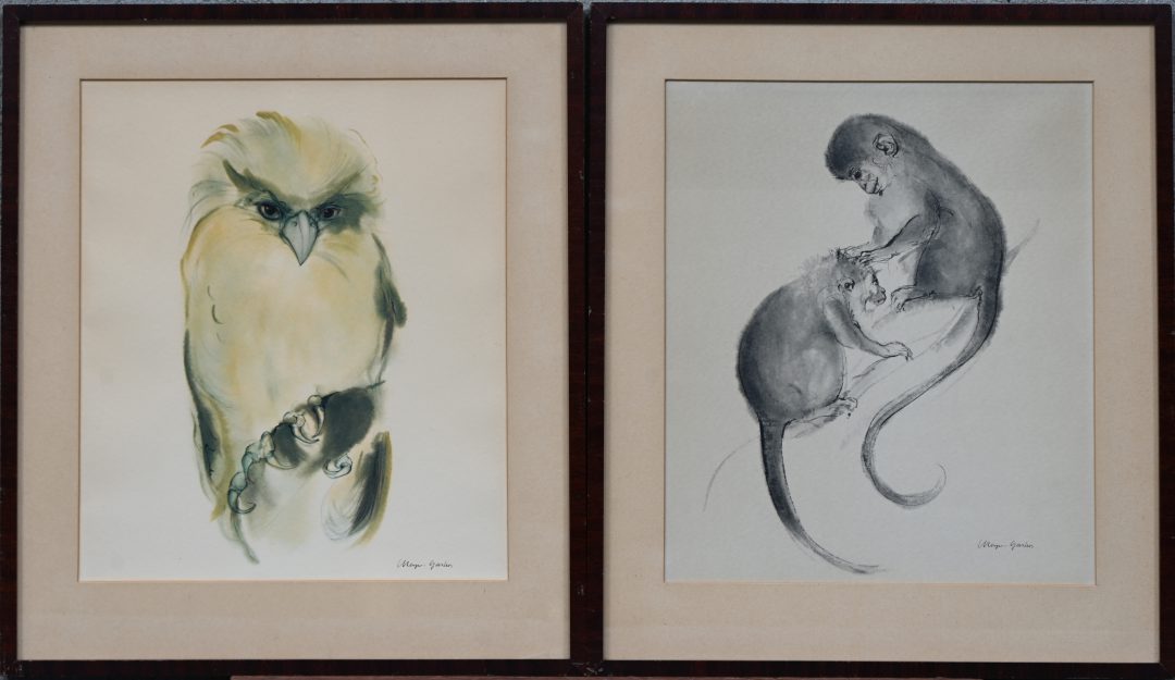 #92Gaby De PauwEen paar naïeve hoevezichten, acryl op papier. Gesigneerd.