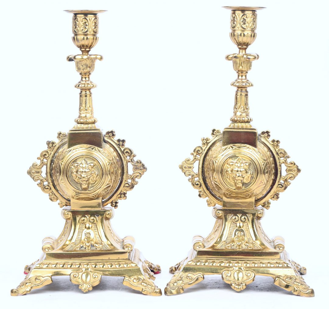 A pair of brass candlesticks in the style of Napoleon III.
