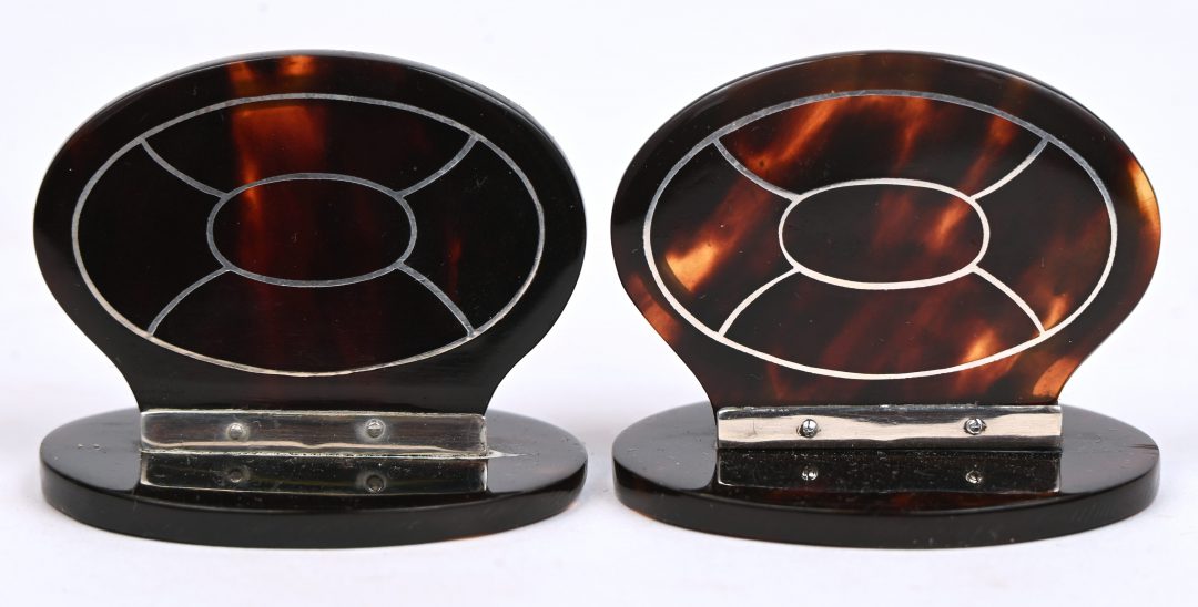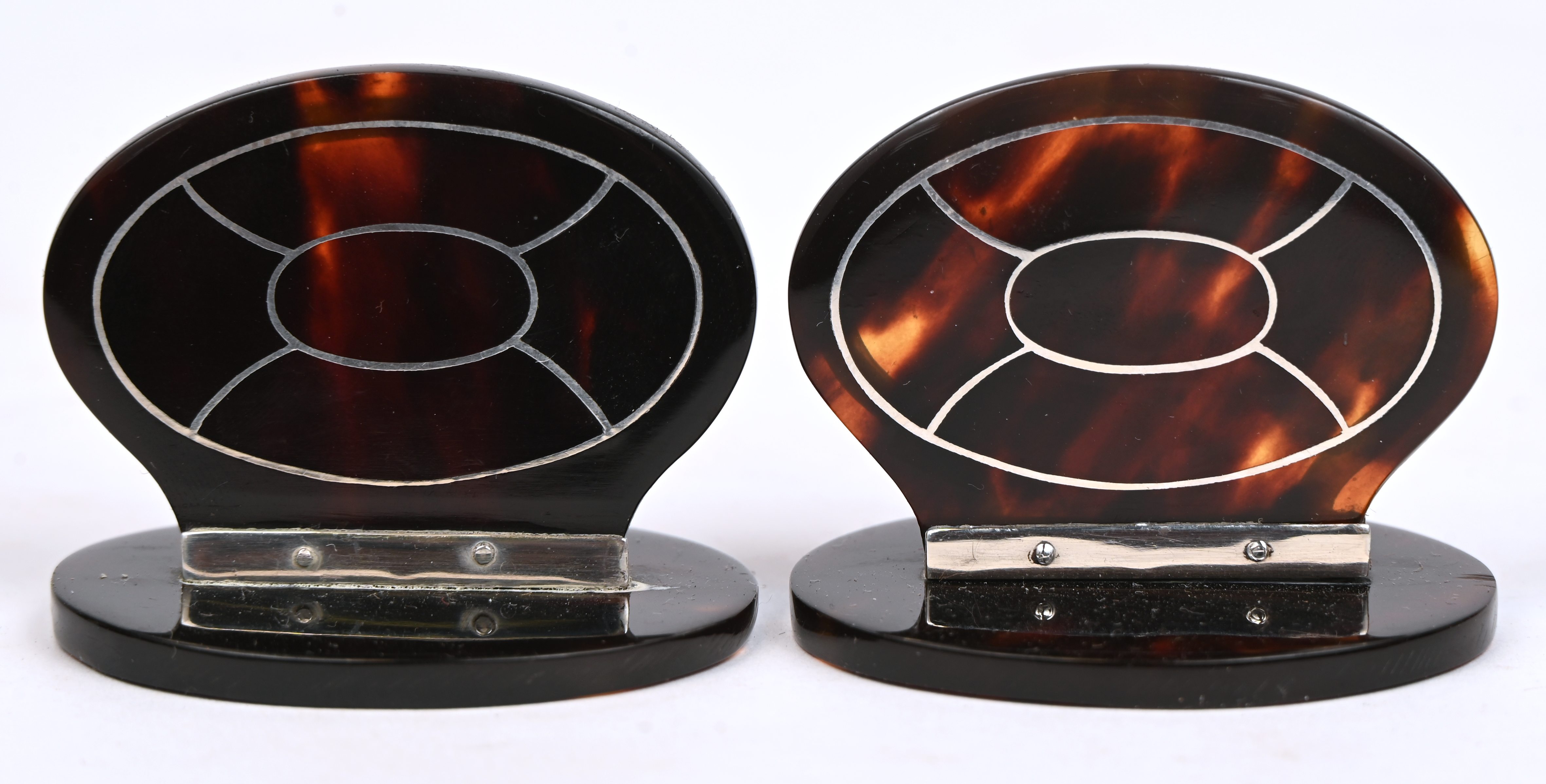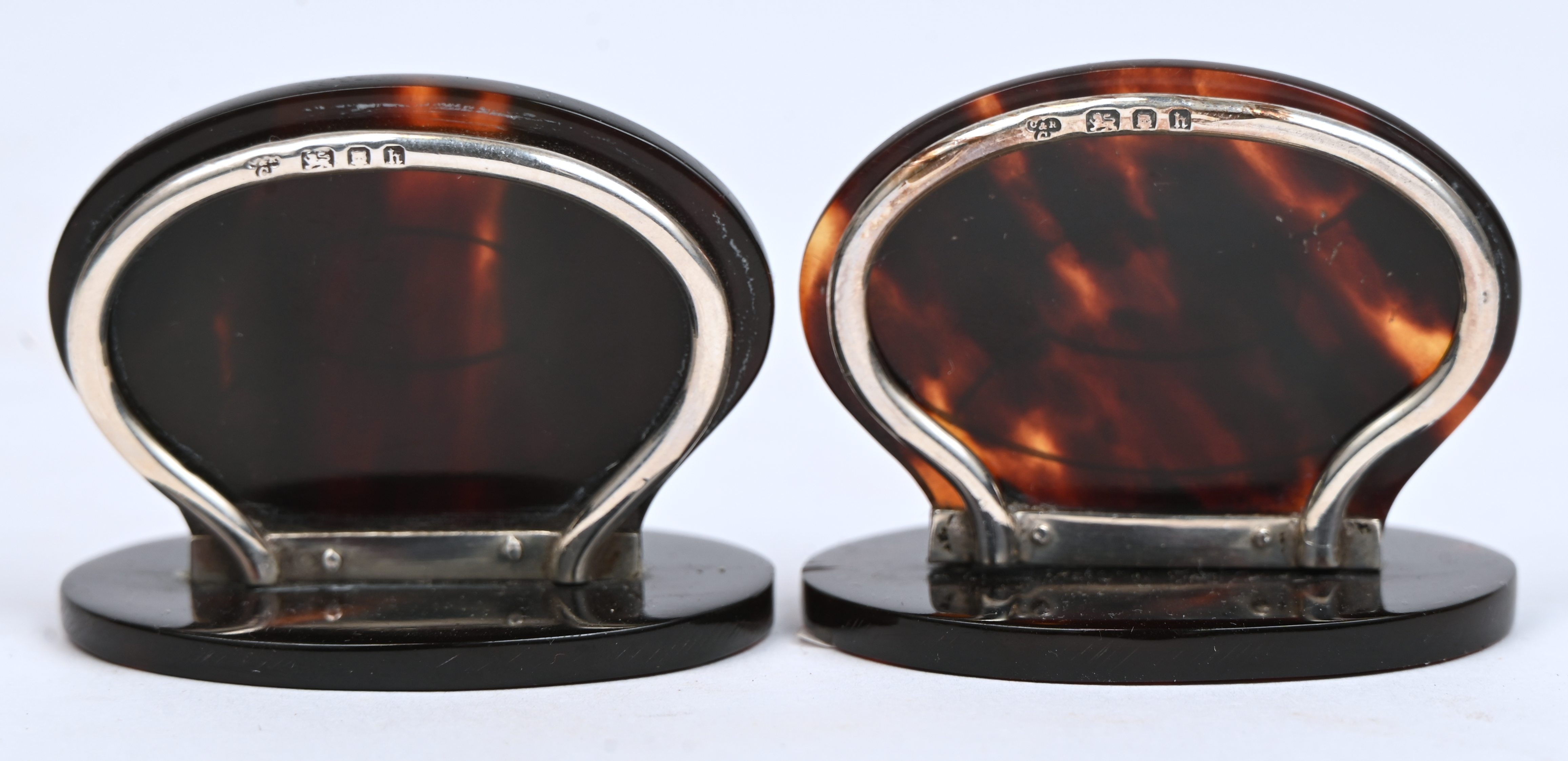 Een paar plaatshouders van schildpad en zilver. Londense keuren. AR44-1+2