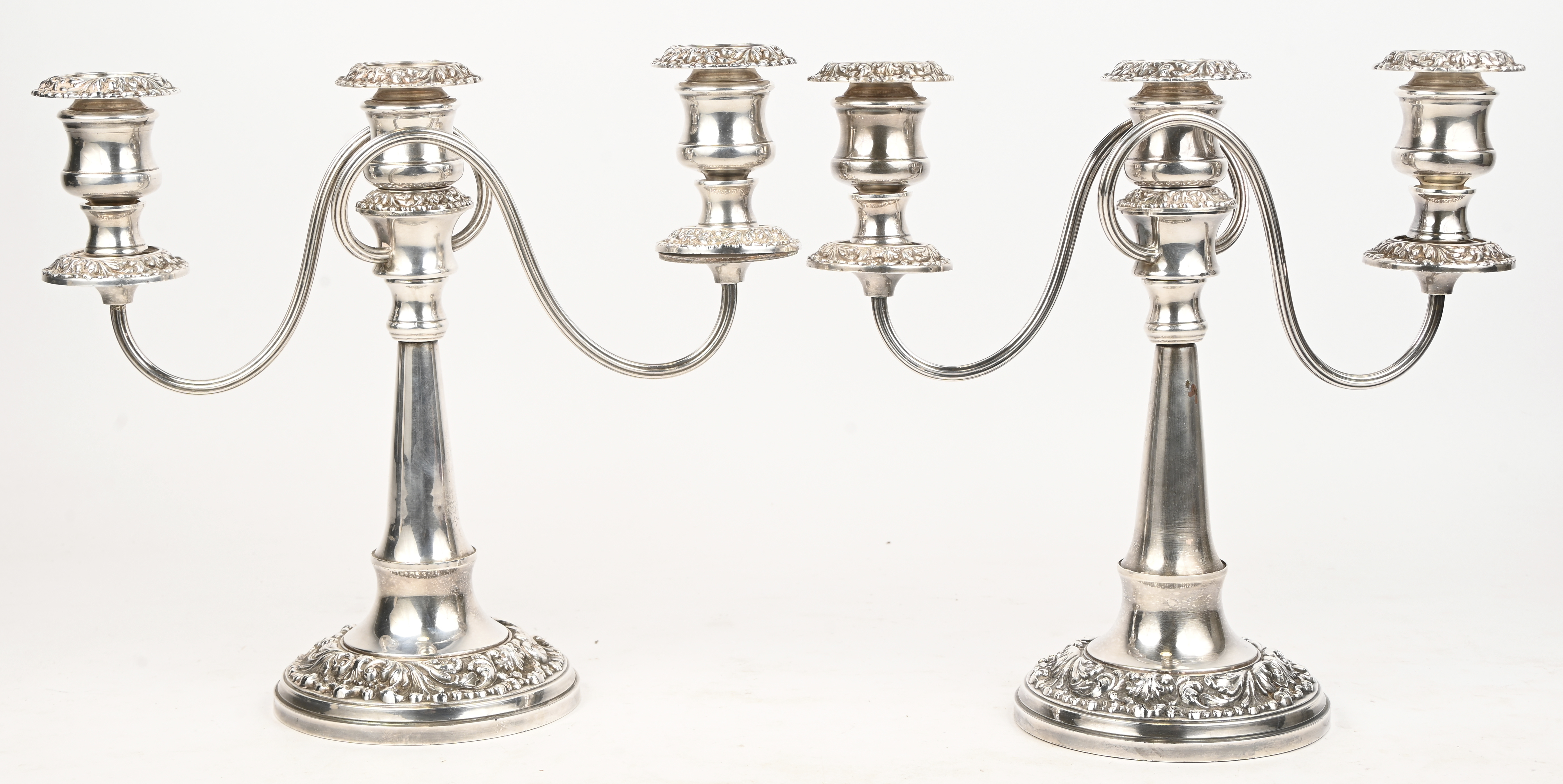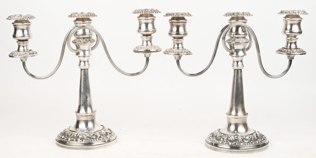 #67Een paar zilveren kandelaars. Gemerkt ‘Garden silversmiths LTD, Sterling weighed. Toegevoegd een verzilverd doosje met een munt op het deksel.
