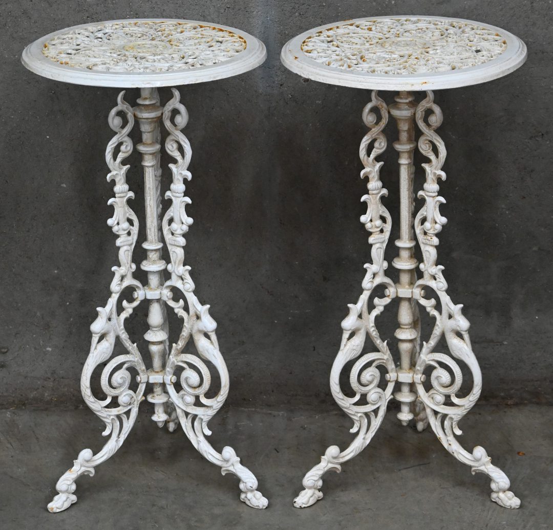 #123Een gietijzeren jardinière op bijhorende sokkel.