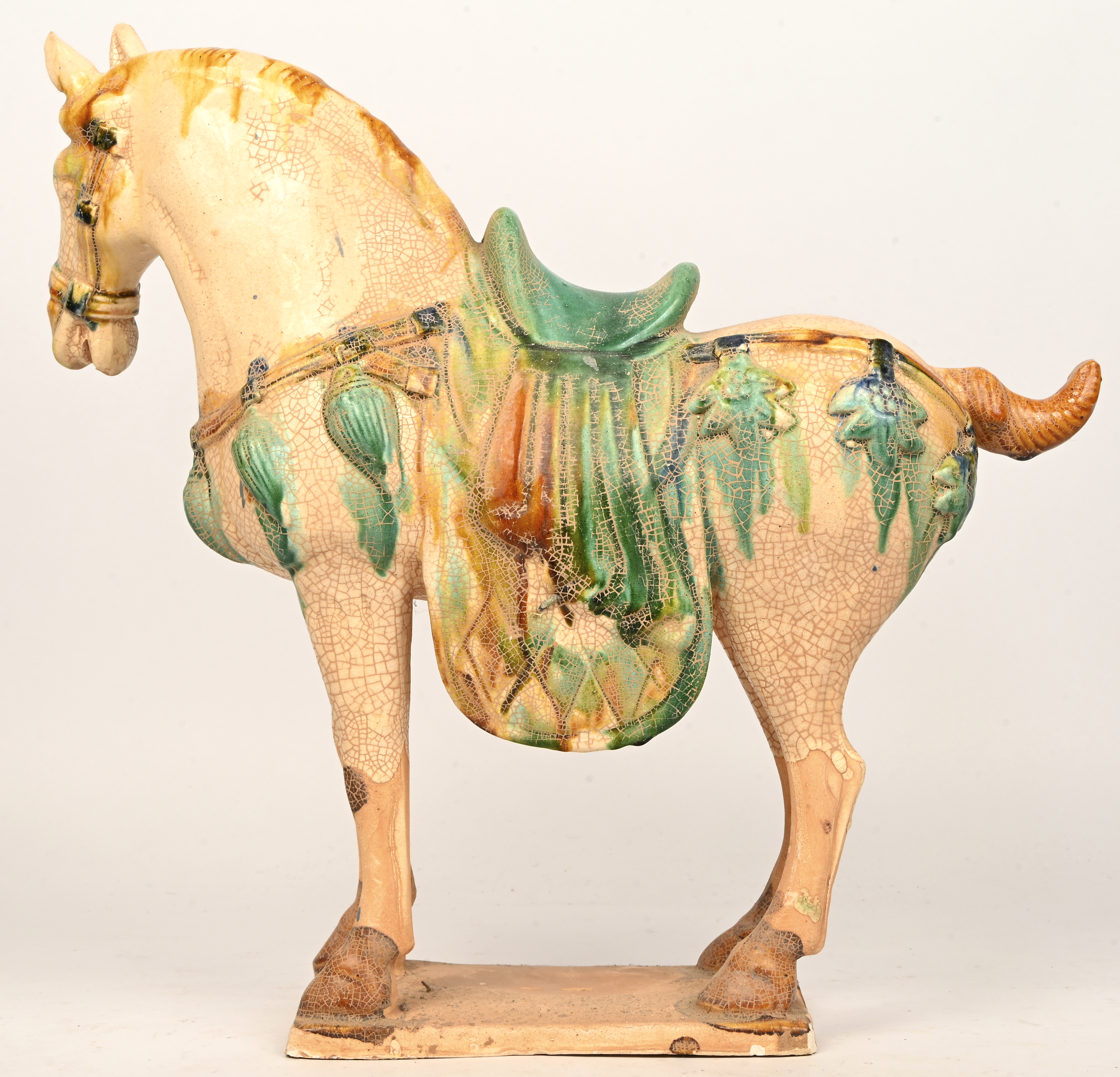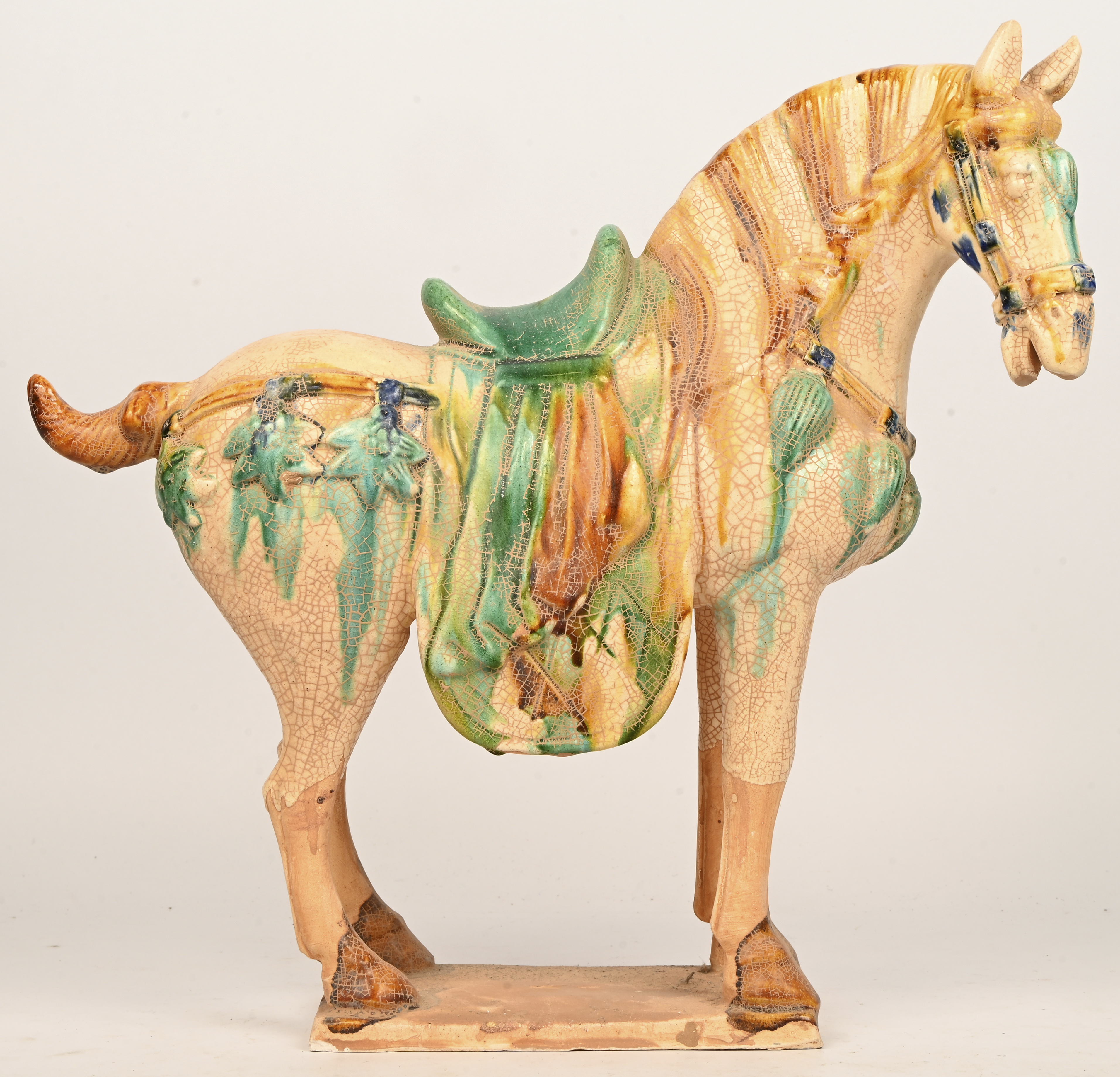 “Kameel met zadeltas”. Een gepolychromeerd terracotta beeld naar voorbeeld uit de Tang-dynastie.