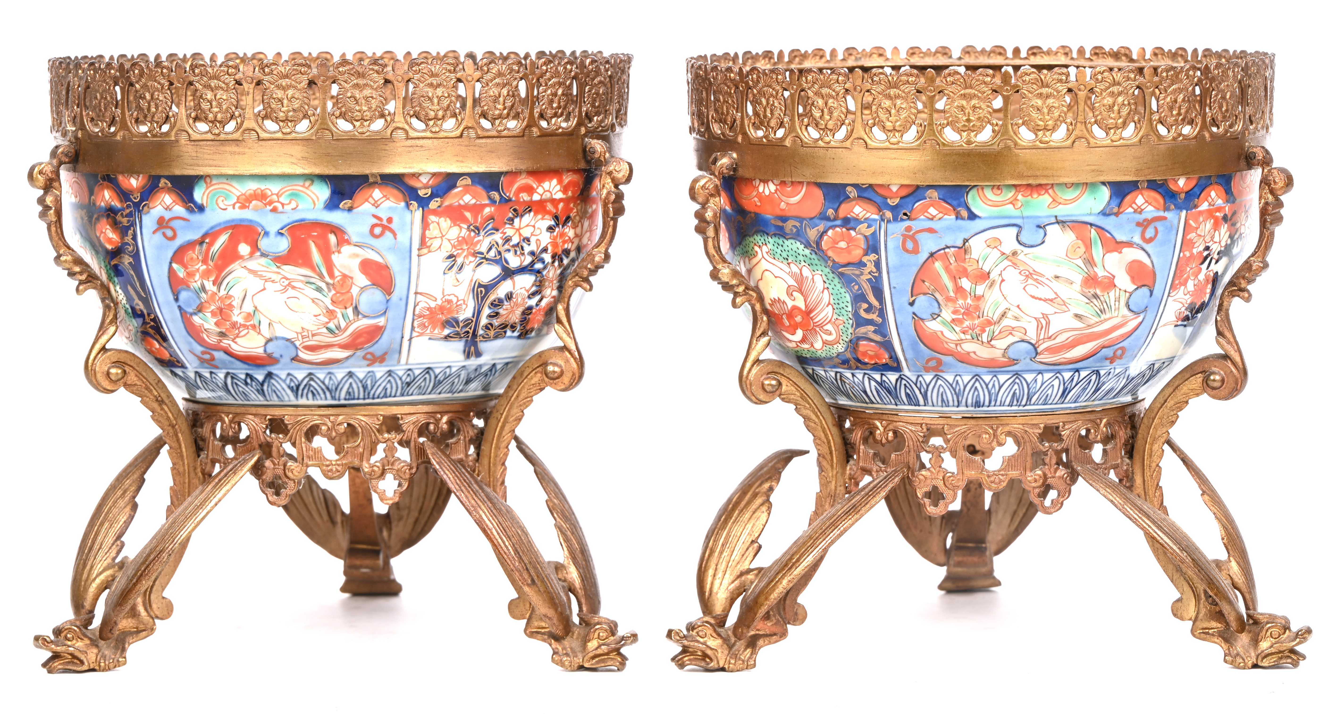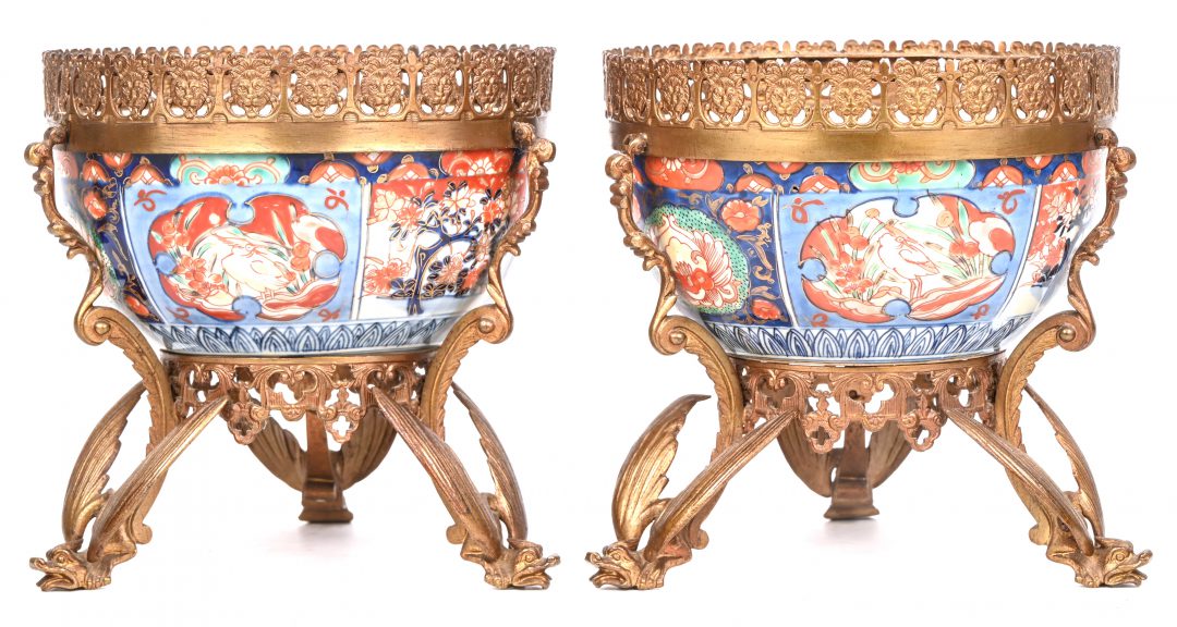 “Elegant koppel”. Twee polychrome porseleinen beeldjes. Onderaan gemerkt. Omstreeks 1900.