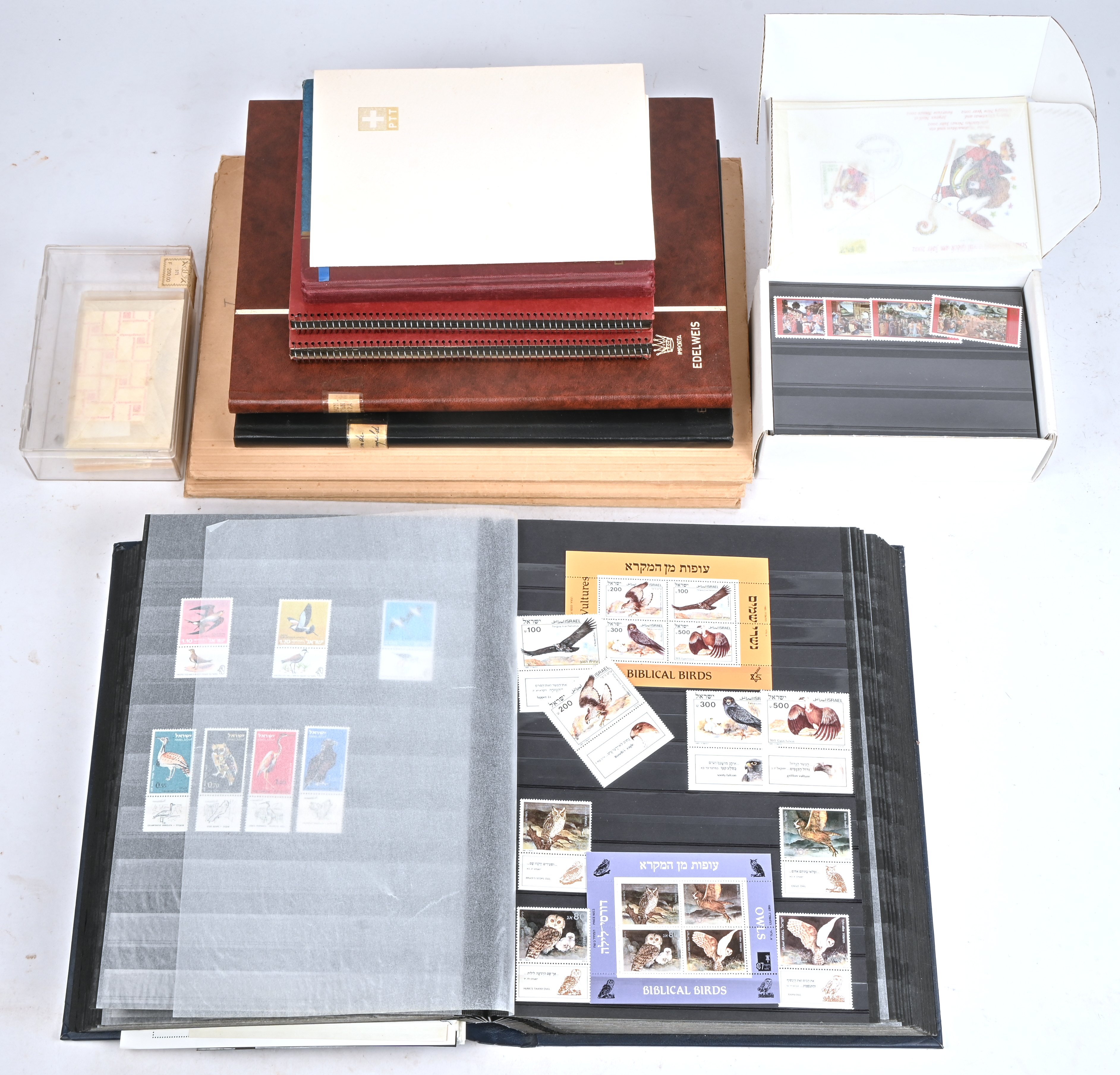 Een partij postzegels, overzeese gebieden, eerste helft XXste eeuw, moderne decoratieve zegels uit Europa, boekjes uit Nederland enz.