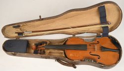 #577Een oude viool in koffer. Met label ‘Compagnon’.