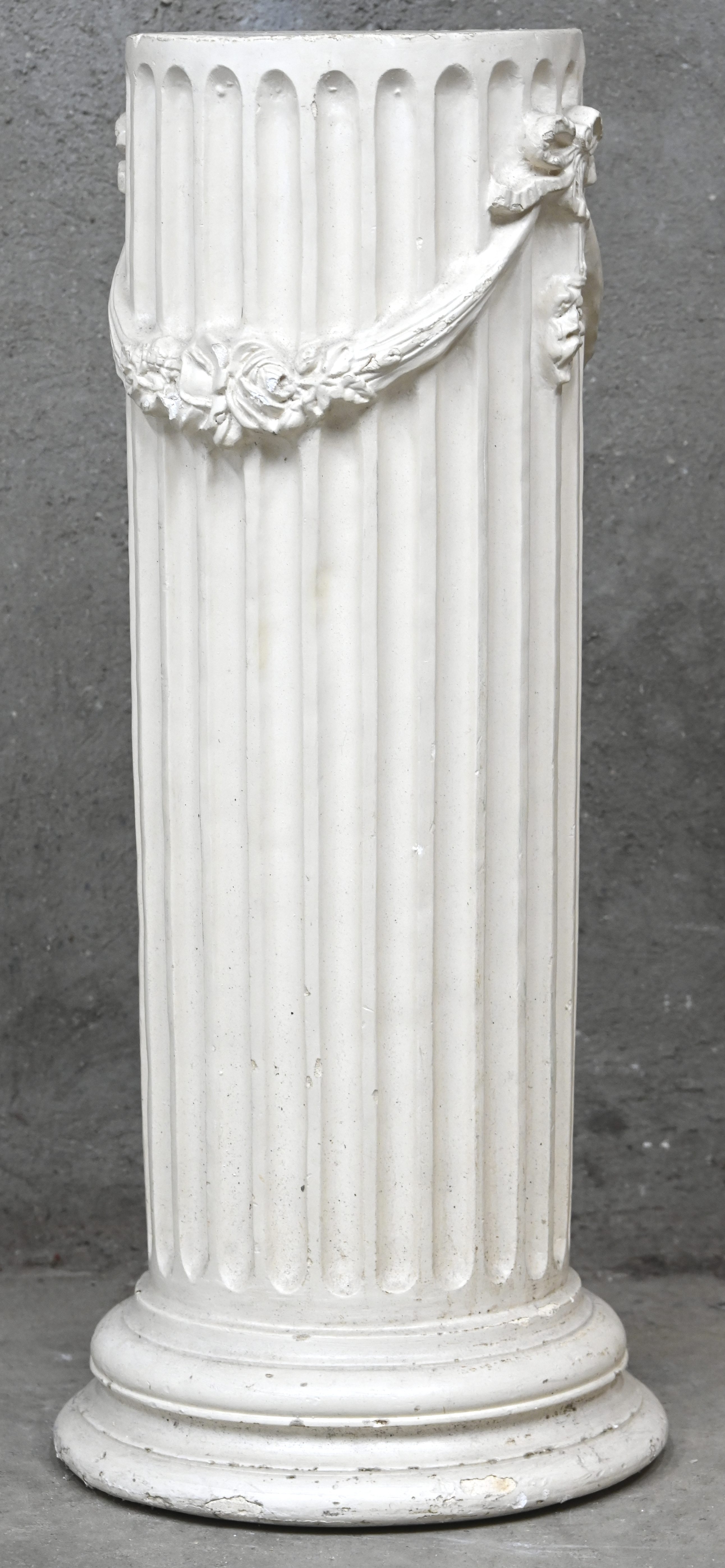 A plaster column, damaged at the base.