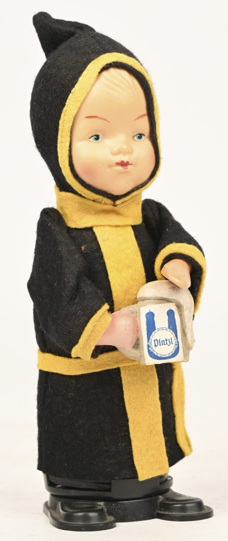 #8JunghansEen mantelklokje in een geglazuurde aardewerken kastje. Gemerkt; Dujardin Lammens.