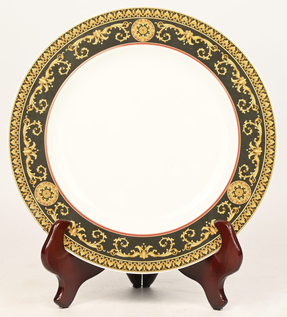 #220Een lot van 4 Japanse Imari en 2 Chinese porseleinen borden in Qianlong stijl. De Chinese borden met haarlijn.