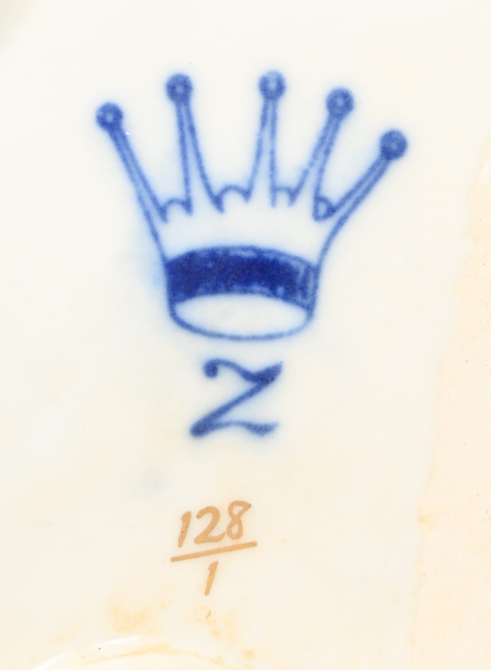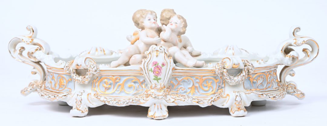 Een porseleinen schaal met 4 engelen gedecoreerd, naar de 19e eeuw. Gemerkt meteen gekroonde Z.