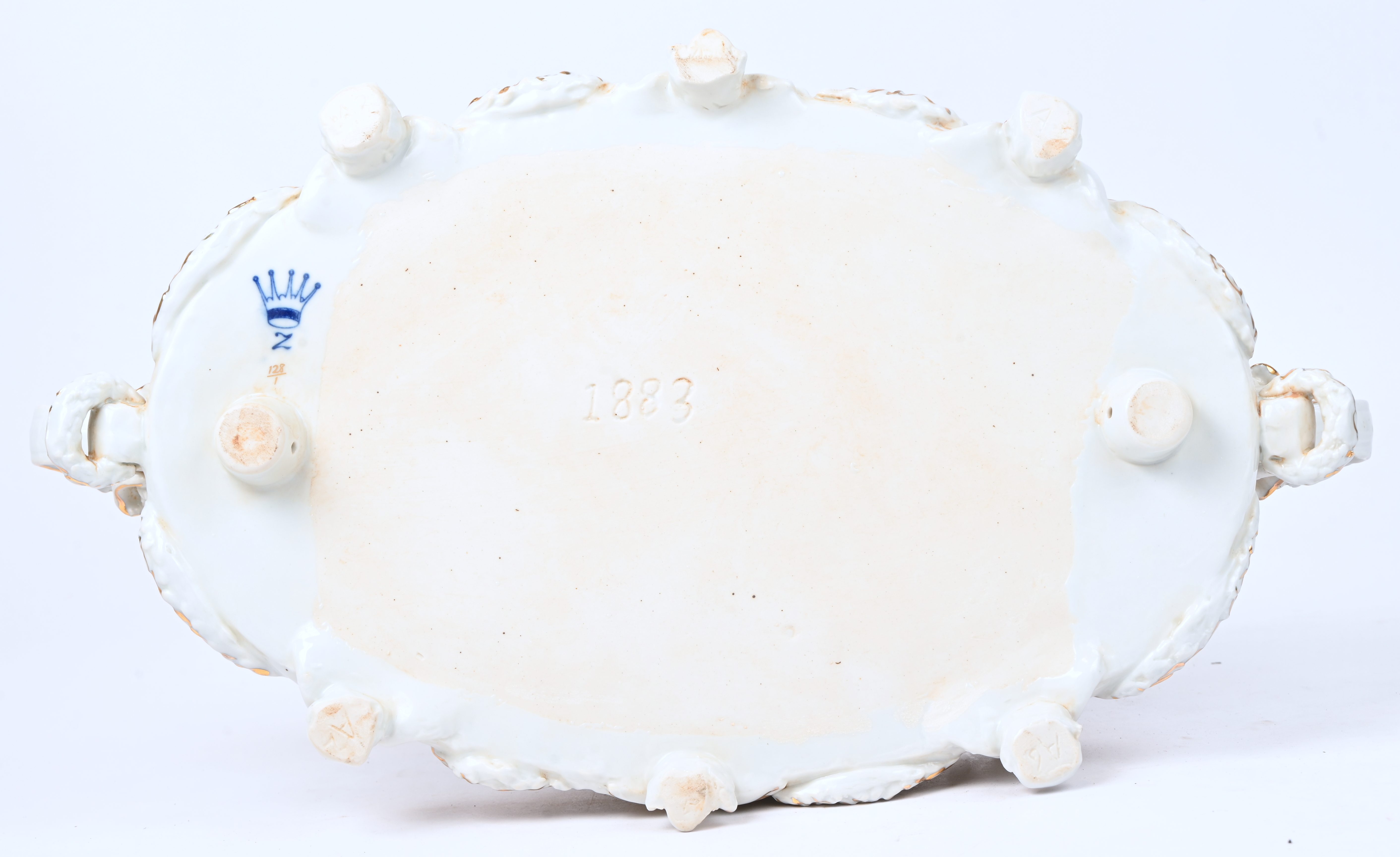 A porcelain dish decorated with 4 angels, after the 19th century. Marked with a crowned Z.