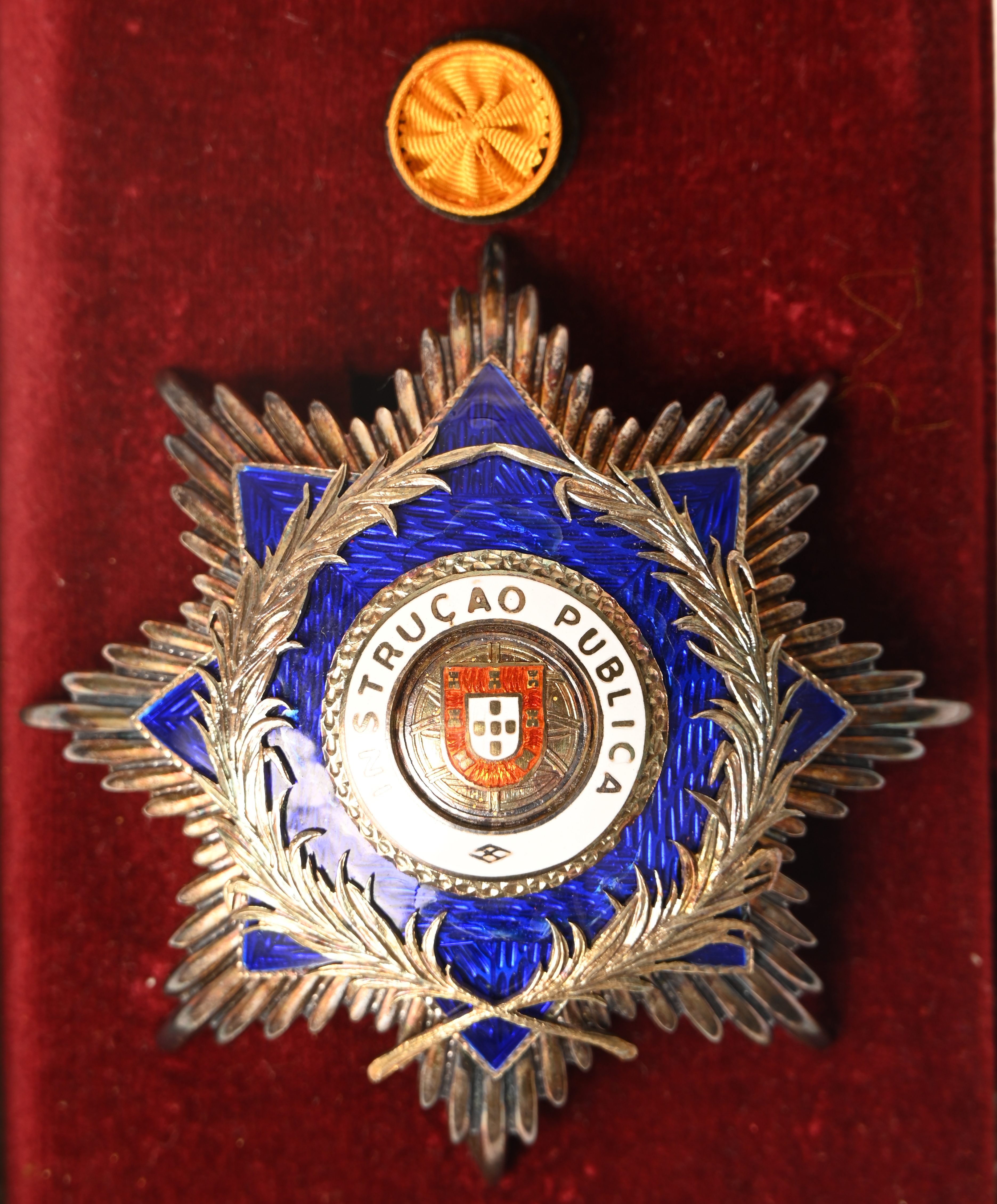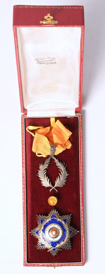 Een Portugese orde voor verdienstelijkheid in het onderwijs, met bijhorende lauwerkrans. In origineel etui.