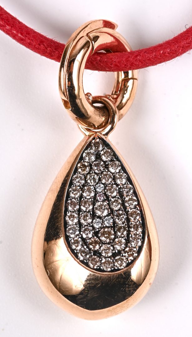 #10Een broche of hanger met twee oorbellen bezet met koraal van 18 kt geelgoud. Achterkant broche de speld alleen goud.